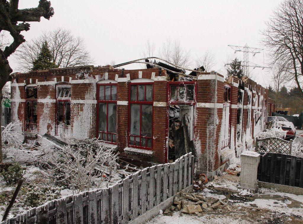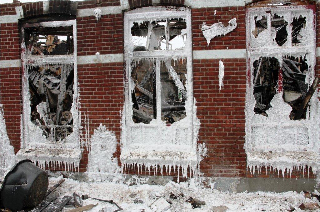 One photo from before the fire - my mother said she scanned it so I suspect it must be from when she was visiting her aunts and uncle in 1998, the other were taken the morning of Feb 3. Europe is in a deep freeze now so the water from the fire-hoses froze: