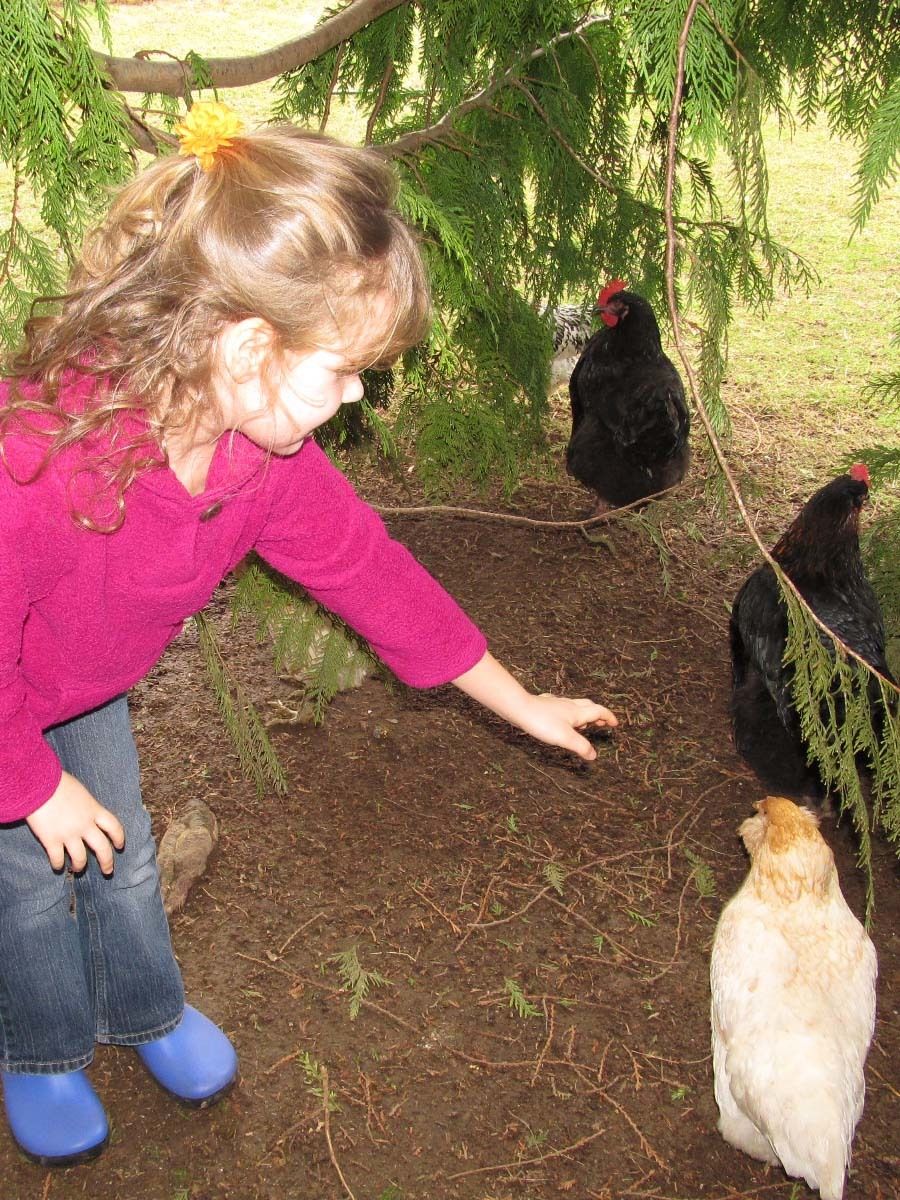 your niece is adorable - in the first picture she looks like the "chicken whisperer". The flock is at rapt attention concentrating on what she has in her left hand while I'm thinking one is gonna fly up and grab it.