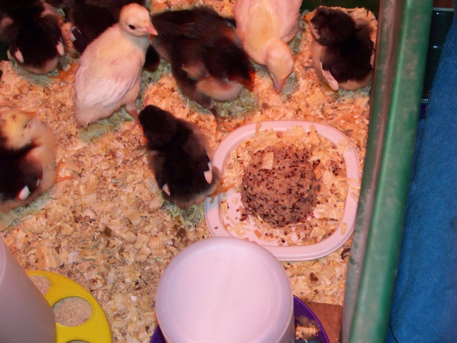 Within 20 minutes these brand new babes ate every spec of Quinoa.................far better protien than chick feed. Full of immolients & fluids. And impossible to ignore!