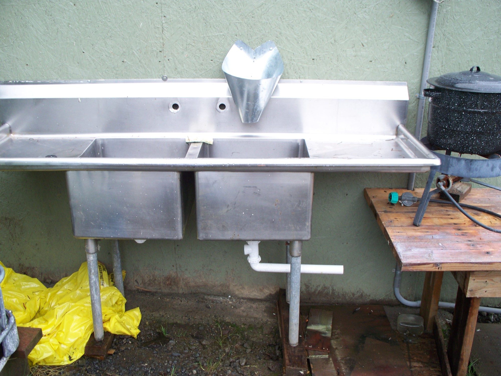 A turkey fryer pot attached to propane tank (filled with water to 160 degrees........and DH built a plucker, and the stainless steel sink with cutting board..............3 rubber maide tubs of water, first to clean guts out...second to rinse, third to chill down & bag them in 1 gal freezer bags before they go rigor.