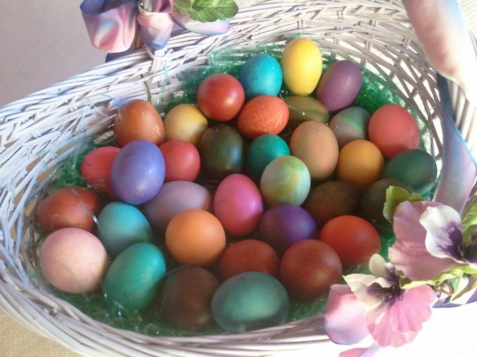So, on a happier note, I just got home from my parent's house where we gathered to dye 3 dozen of my chickens' eggs with my teenaged nieces. I love those girls, especially for teenagers - they're all pretty special. (I have a sweet nephew too but he missed out because he was at a sleepover). We dyed BCM eggs, Ameraucana and Araucana eggs, the Salmon Faverolles and Light Sussex. I had picked up some of the Wilton paste gels that someone elsewhere in the forum had suggested using and I am thrilled with how they turned out! The combination of colors from the natural hues of the eggs with the intensity of the Wilton dyes were so much fun to play with! We decided they were pretty enough as they were and not to decorate them with anything else or put anyone's names on them. There are enough we'll just let folks pick out their own after Easter dinner on Sunday.