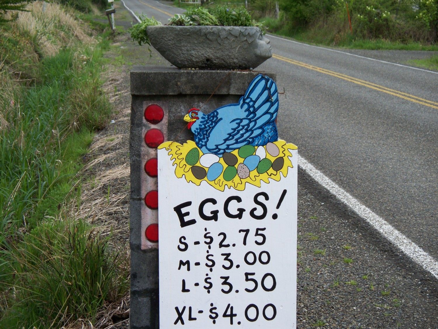 The head is not what I'd choose as decoration but the artist did a very realistic job with the face. On the other hand, I really like your egg sign!