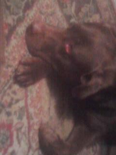 Sorry for the bad pic---my mom took it with her phone. Yes, Bailey's eyes are THAT red. Poor thing probably didn't sleep for 10 days!