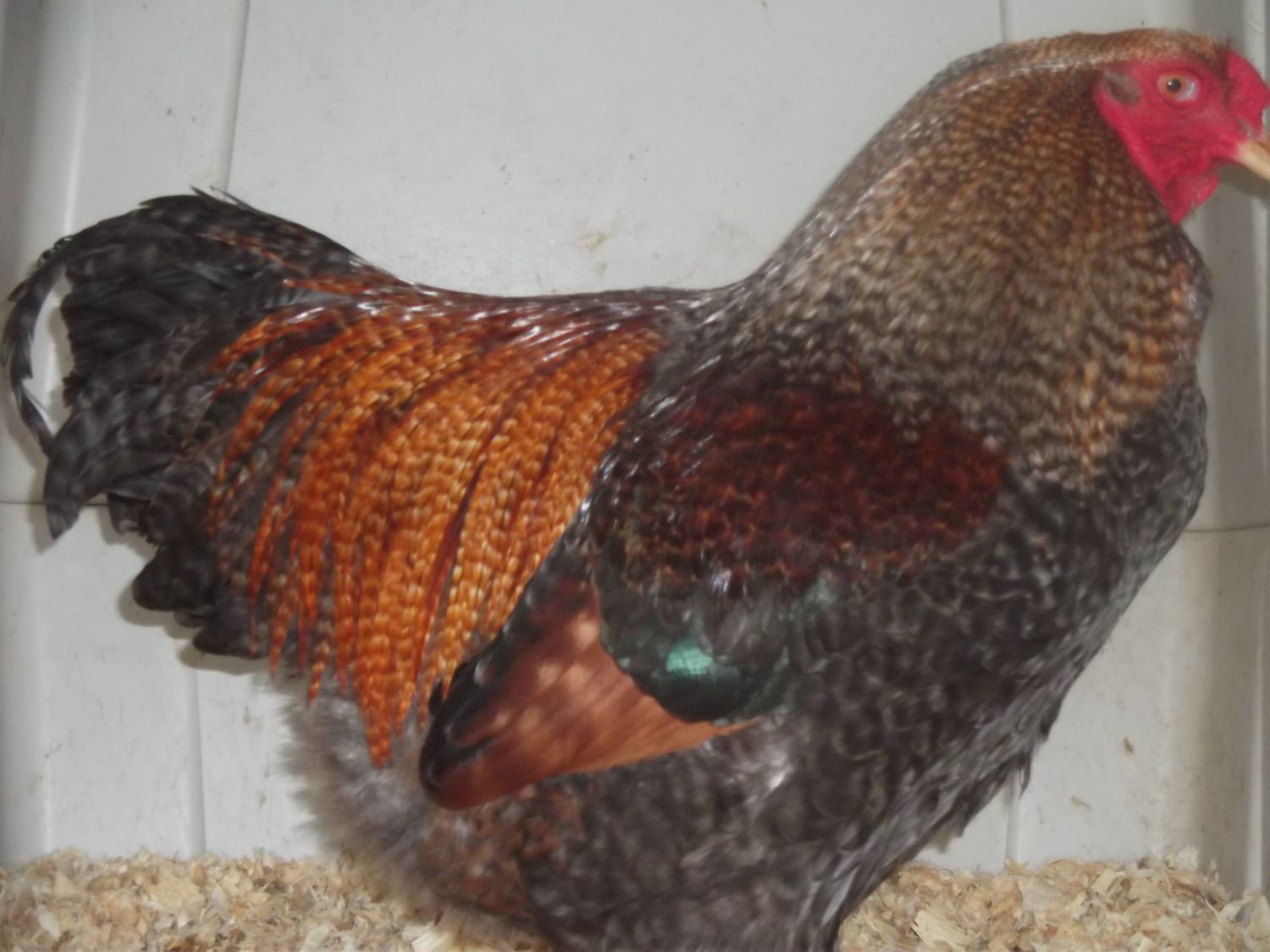 "Phoenix" as some of you have seen him before, sired 3 chicks, one of which is going in my breeding pen to mate with Wellsummers to improve the vibrant Crele coloration....I am excited about this project !