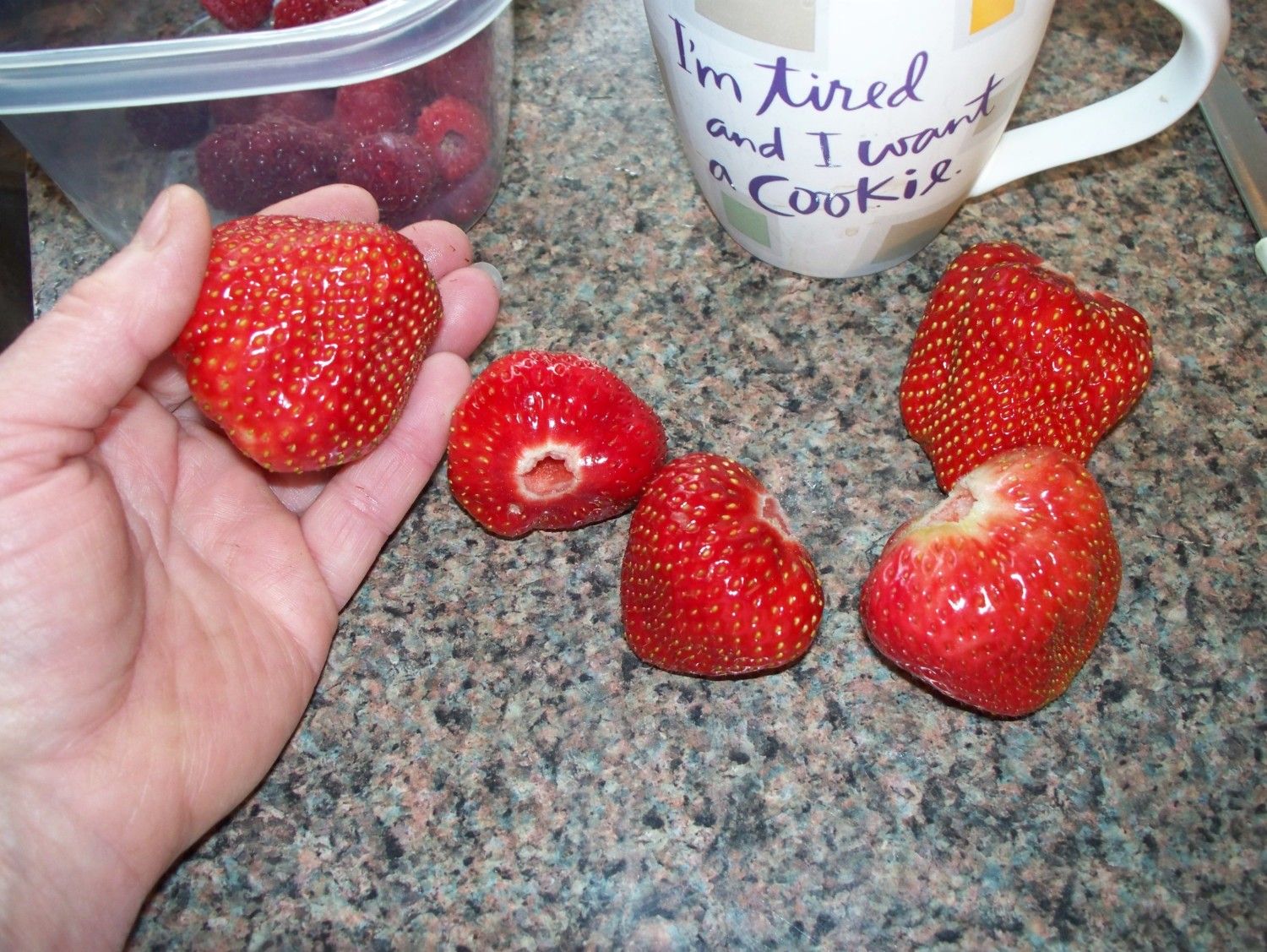 These are 2 yr old mammoth June -bearing strawberries I got starts from WA4-HPoulltryMom.......massive berries !