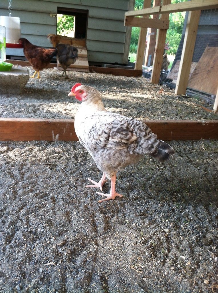 Pretty sure this "pullet" just crowed this morning (one of the newbies):