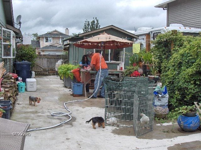 Really? Why? Now I'm going to have to have DH look at what he used in the hose to put the system together. We used a washer hose, and I know there is a little metal filter thing that only lets water pass through from the bucket to the hose. Plus, the nipple itself has metal on it. I believe the rest is plastic (a food grade bucket, and PVC pipe parts).