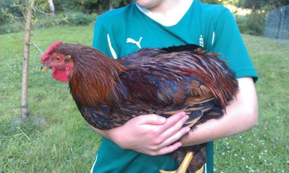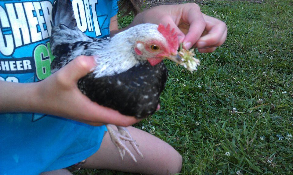 This is my daughter and her 17 week old girl Pancake (yes, she named her) the RIR. I was so nervous about having Pancake b/c after (of coarse) we got her, I read post after post after post about how mean and nasty the RIR's tend to be, I was thinking "of coarse they are b/c I have one!" But this girl is our sweetest big bird out of the 6 chickens and the 3 ducks. Pancake will never see a dinner plate, (unless her personality changes for the worse)!