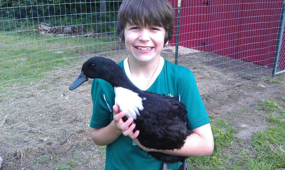 This is my son and his 10-ish? week old duck Mugs, like the Rootbeer. He is a very handsome guy...the duck and the boy.