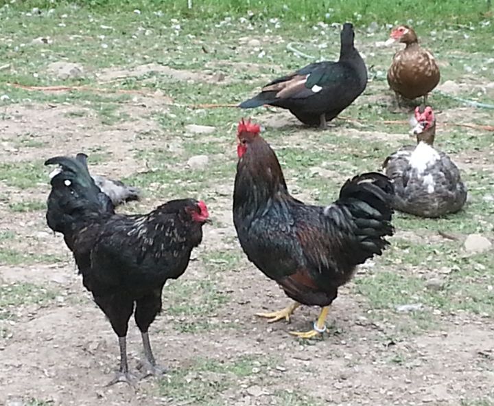 WHAT BEAUTIES YOU HAVE!!!!!!!!Well, this is a first for me. I finally let my Barnevelders out into Gen Pop after being in Quarantine for 3 weeks. I did it last night, just before dusk so the two cockerels could take a look at each other but not have to fight at bedtime (wasn't sure it would work). There were no ruffled feathers - himself put the 3 pullets and the cockerel on the roost and all was quiet.