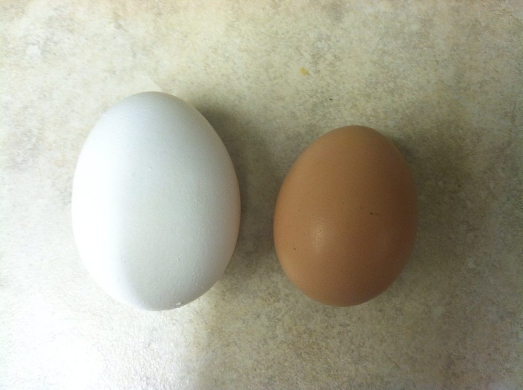 Congrats!! How big is a first duck egg, compared to normal sized chicken eggs? Looks big!