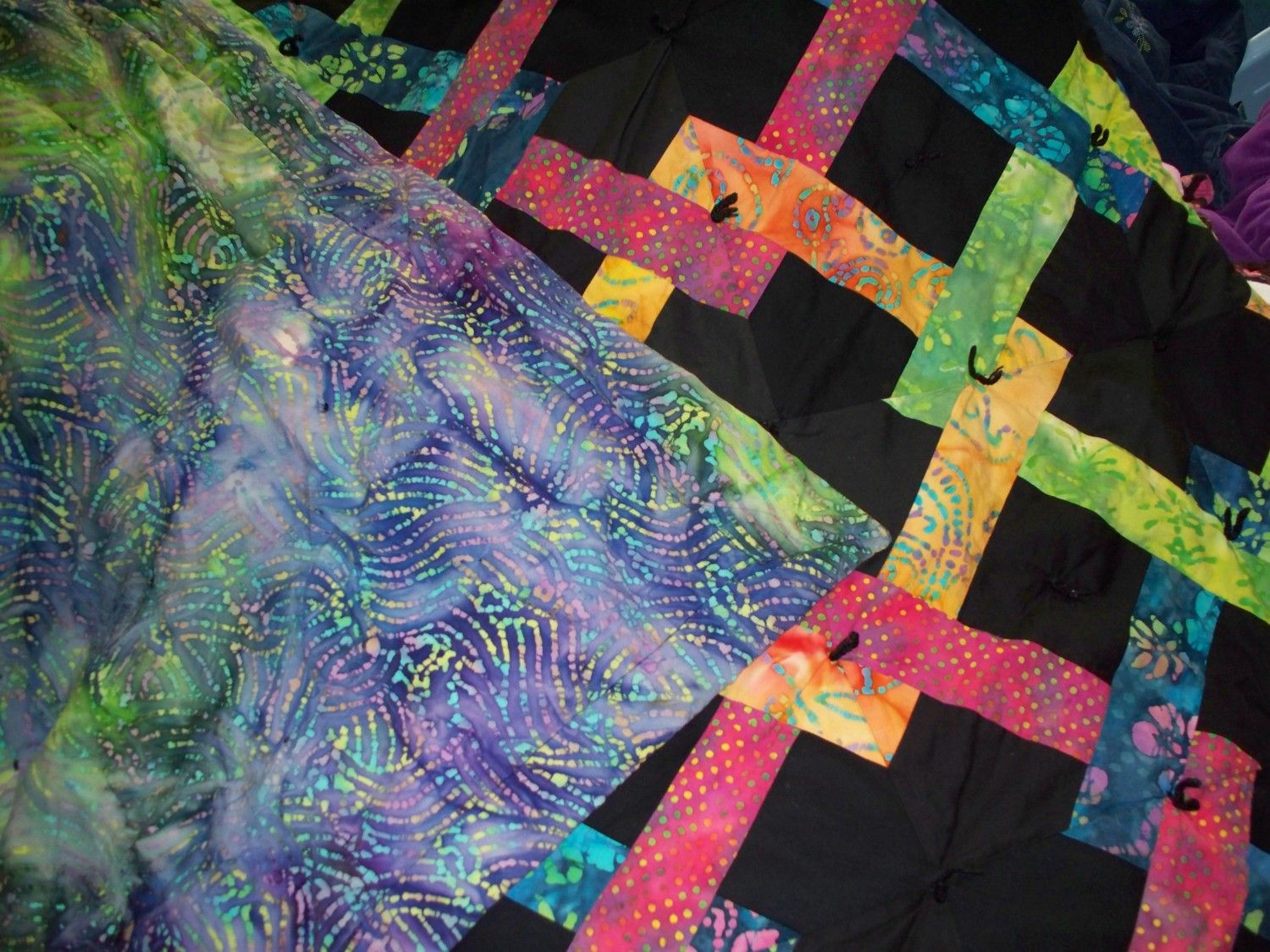 This one BTW is not quilted, it is tied, due to the double batting...it would suffice for sleeping outdoors in the Yukon in winter.