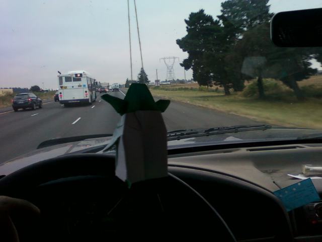 Well my Yoda made by itsren's eldest DS took a little trip. We had intended to take a few more pics like Yoda in the rail, Yoda on my Banshee etc but things kind of went a little bad. Including shredding a trailer tire just before Portland. Yoda really wanted to get out and help change the tire but I wasn't taking any more chances with others out along the freeway. So here are the adventures of Yoda that I was able to capture. Sorry some of the pics aren't very good.Yoda is pretty camera shy which makes it hard to get good pics.