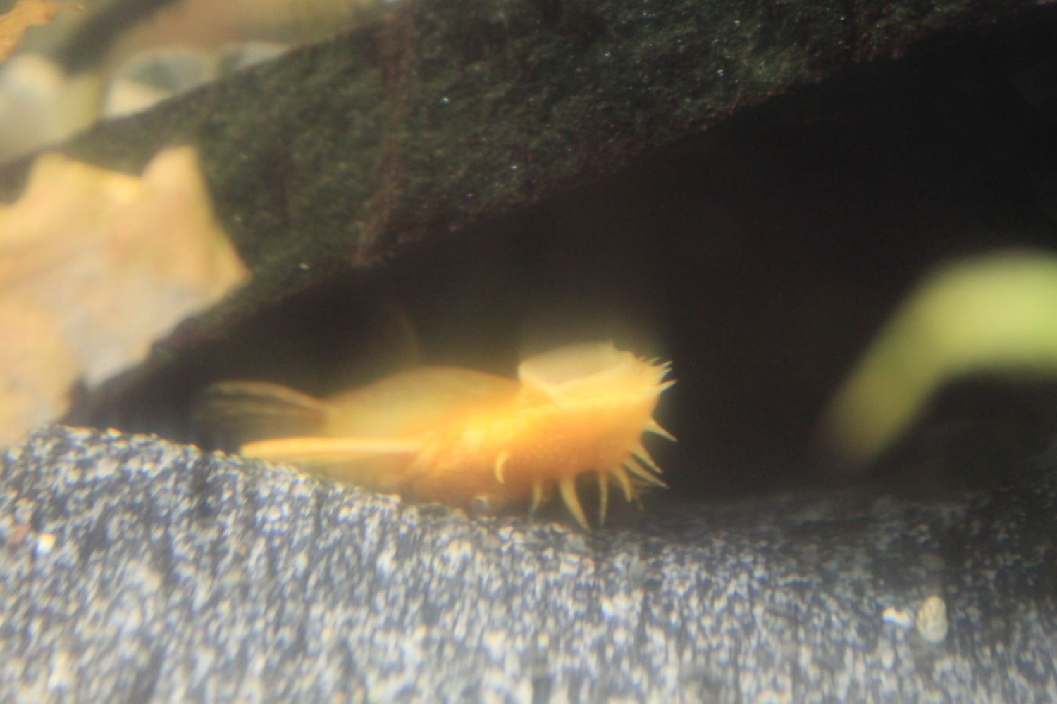 Thank you! I love my albino bristlenoses...I've had my breeding pair for almost five years and they spawn like clockwork every couple of months, usually 50-100 babies in a batch. The male's fierce in his little cave, he guards it like it's Fort Knox and doesn't let anyone get away with eating his babies as long as they stay in the cave. The female's a better worker since she leaves the parenting and territorial stuff to Dad, but it's really interesting to watch them interact. Sometimes I raise the babies to sell or give away, but usually I let nature take it's course and let the other fish eat them as a live food source since raising fry is a lot of work (with the exception of livebearers :P). I have one of their babies in with the goldies, he's almost 2" long now and starting to get his bristles in, he does great with the green algeas but doesn't seem to care for the black fuzzy stuff. A peroxide dip turns it pink and makes it die and fall off, but I know it will come back unless I take care of the underlying lighting and nutrient issues so until I have more time to experiment, I'm resigned to the driftwood looking like a wookie.