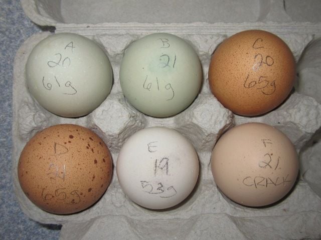 EGG "E" - Third to pip, third to hatch... white egg: yellow chick, 5 toes with lots of feathers on feet. The kids named him/her "Softie."