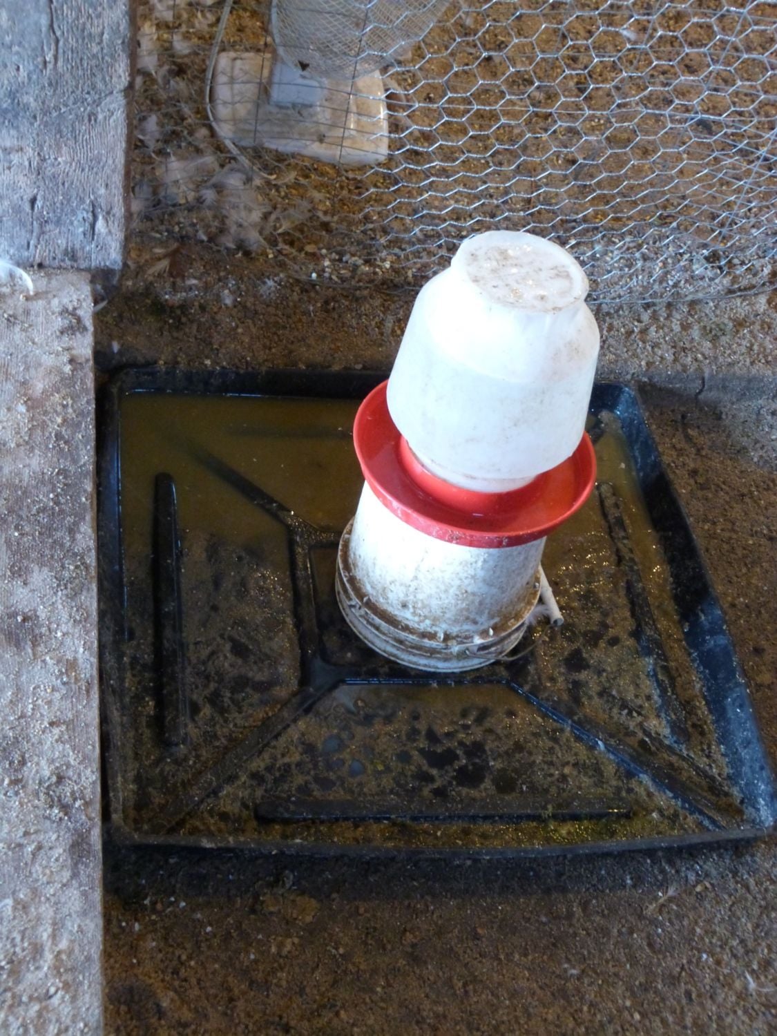 This indoor water is in addition to their kiddie pool in their enclosed foraging pen. They're indoors when no on is home to watch them.