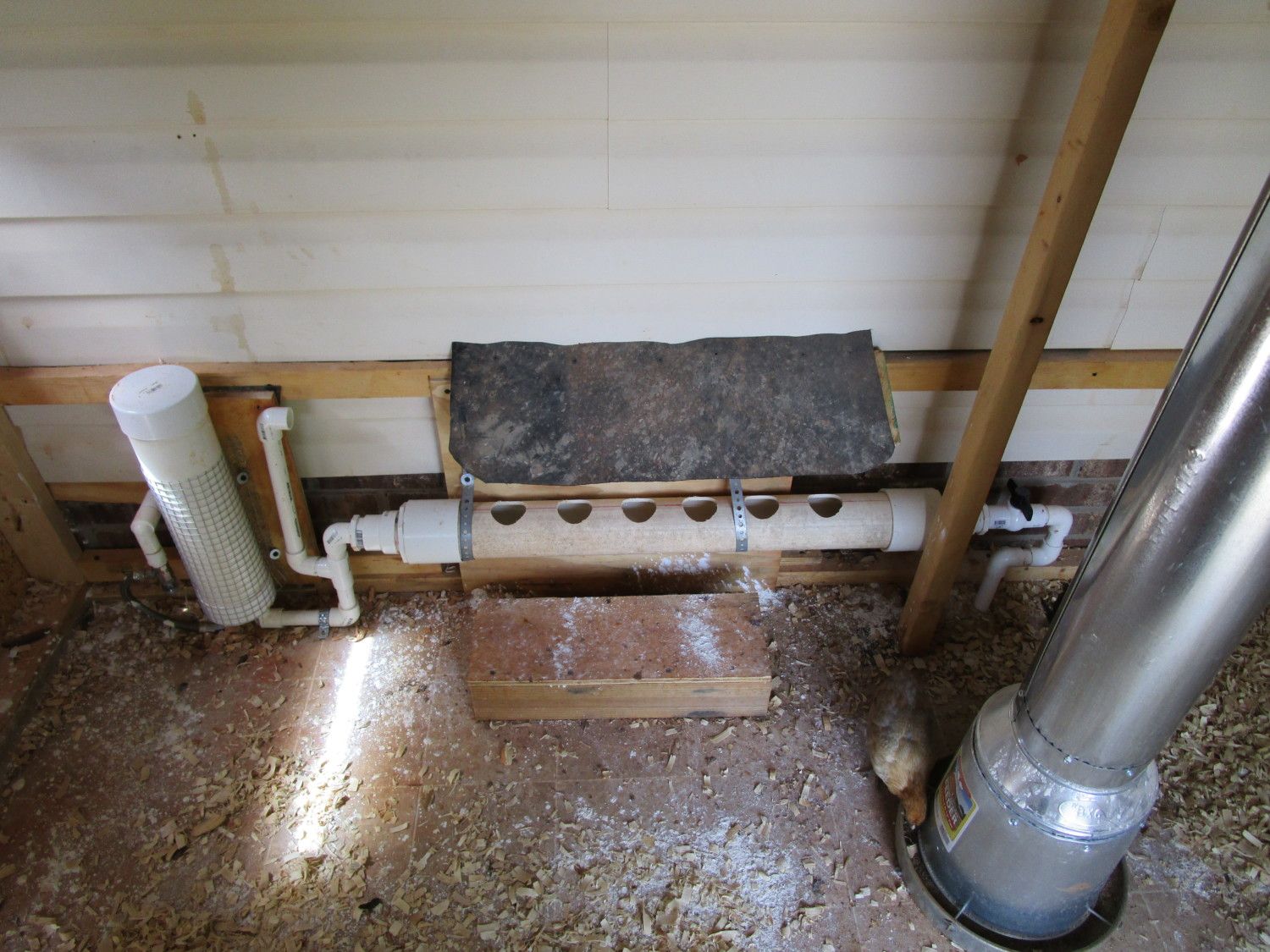 I did forget to ask a question.....Just so happens 1 of heat pumps condensate lines runs out right beside part of my run. Do you see any reason i cant do a lil piping and have the condensate water run over into a plastic tub, inside the run? Seems the condensate is nothing but humidity from the air, which is run through PVC pipe, and should be fairly clean. Thanks. PS. Thanks to ALL that replied...I just type slow, and by the time i replied, you guys had chimed in.