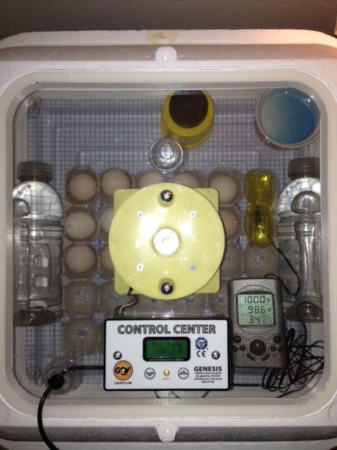Hello, I have several thermometers in my incubator currently and of them is inside of a water wiggler. The thermometer reading air temperature on the floor of the incubator is reading about 100 degrees, but the water wiggler is reading 98.6 and it is level with the eggs. It WAS reading exactly 99.5 when I had all 48 eggs in there, but I removed 34 infertile/shipping fails and it has been reading cooler ever since.