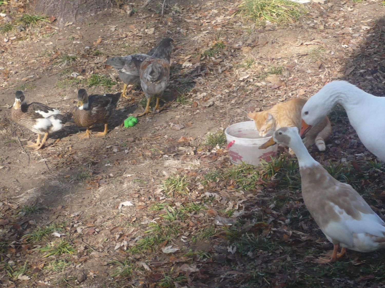 My geese chase everything that will listen to them out of the yard. Especially cats. Mine go around the outside of the pen now. LOL It apparently doesn't take more than one or two surprise tail nabs (esp. from African male) before they just don't go there.