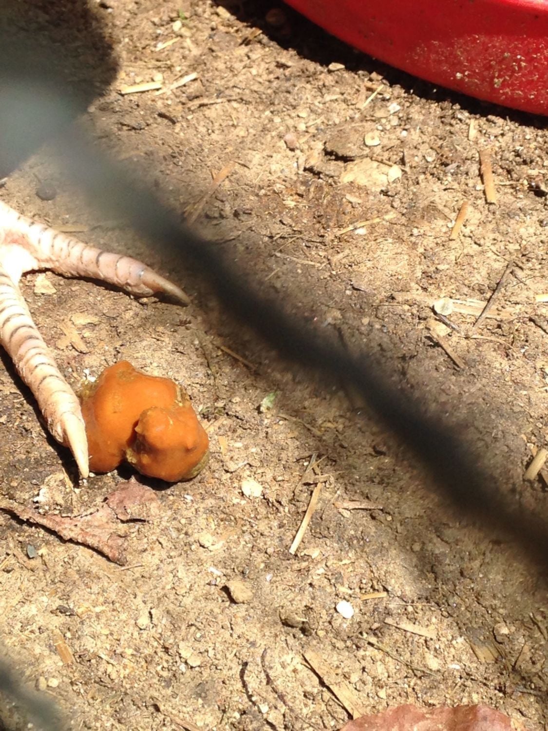 My chicken has been popping like this for a week now....nothing has changed and the other chickens poop is normal, should I be concerned? She also has not had anything orange to eat.