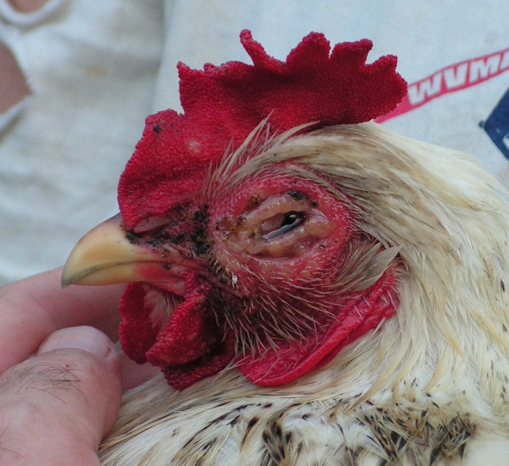 About a week ago, I noticed her eye was a little swollen and she had clear bubbly 'water' in the corner of her eye. I thought it was a peck-injury or she had gotten something in her eye that was irritating it. I douched her eye with Vetericyn Poultry Care and put a drop of Vetericyn Ophthalmic Gel it in twice a day. After a few days, it didn't look worse, but wasn't really any better. Yesterday, the swelling was worse and she developed those bumps around her eye. I started treating the eye with a triple antibiotic, but it isn't getting any better.