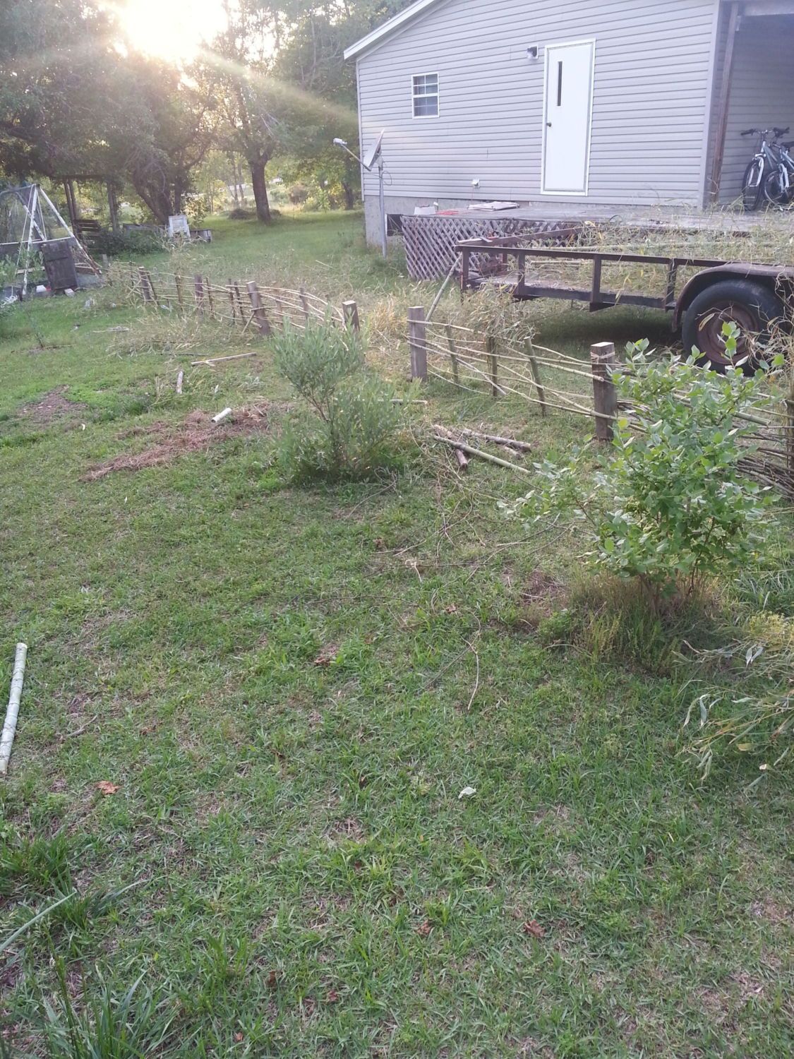 Really, I think of it as phase 2 complete. I need to do some filling in and get my plants put into make it a living fence later on. I also need to get my gates made and fill in a few places in the fence.