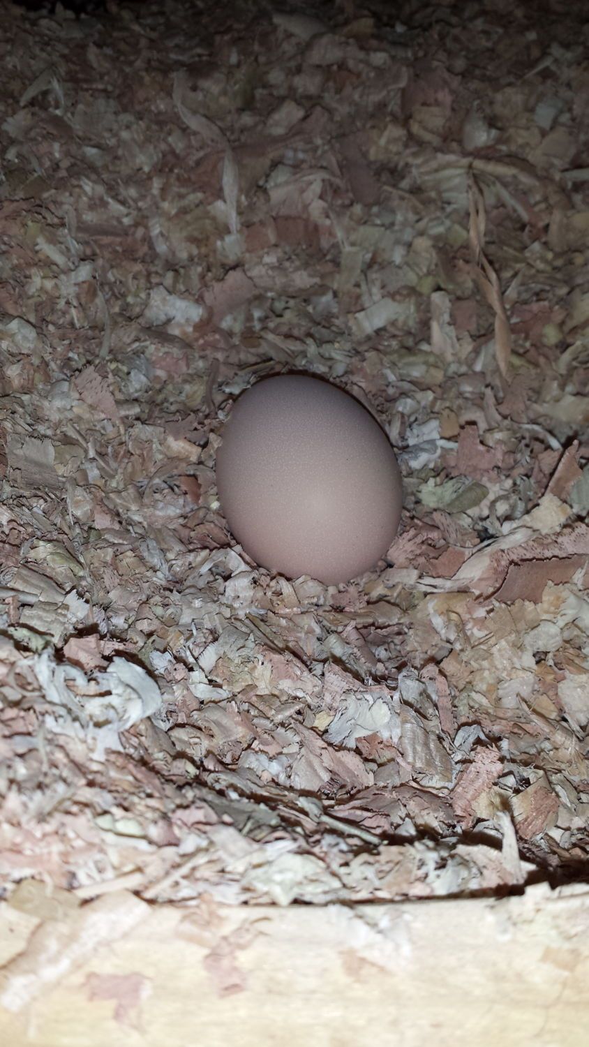 I knew one of my Doms, Ricky, was getting close to laying. I went out to buy two of the ceramic tan eggs to put in their nest boxes to show them where to get some privacy. I got home tonight and put one of the eggs in one of the nest boxes, and then opened the other nest box and already saw an egg in there. For a moment I stood there staring at it wondering how I got the other egg in there already and realized that I was still holding the other fake egg, Rickys egg is identical to the ones I bought. But I got so excited.