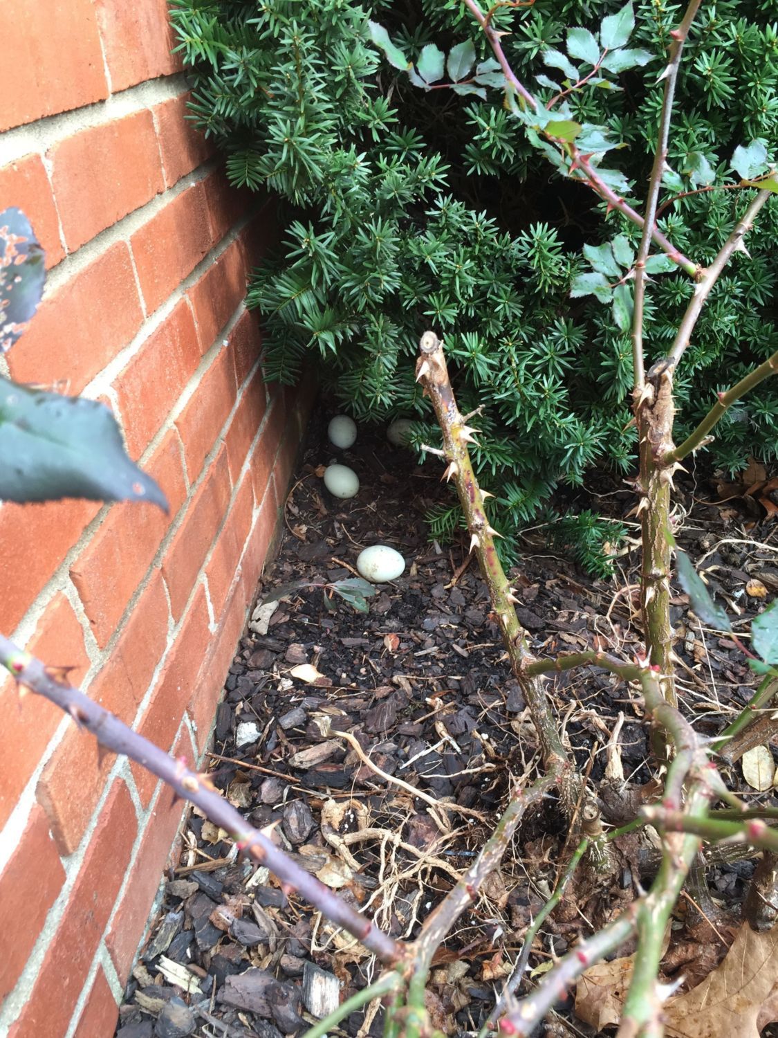 That happened here too. I noticed egg production was off slightly but didn't think much of it. Then I found a nest with 22 eggs of various colors so it must have been a communal nest behind the yew bush right next to the foundation, just like yours. I probably should have cracked the eggs to see if they were OK, and I could have scrambled them and fed them to the dogs, but I just tossed them. I kept the hens locked up for a few days and hopefully the problem has stopped. I also cleaned out the area around the bush so I can look right in now.