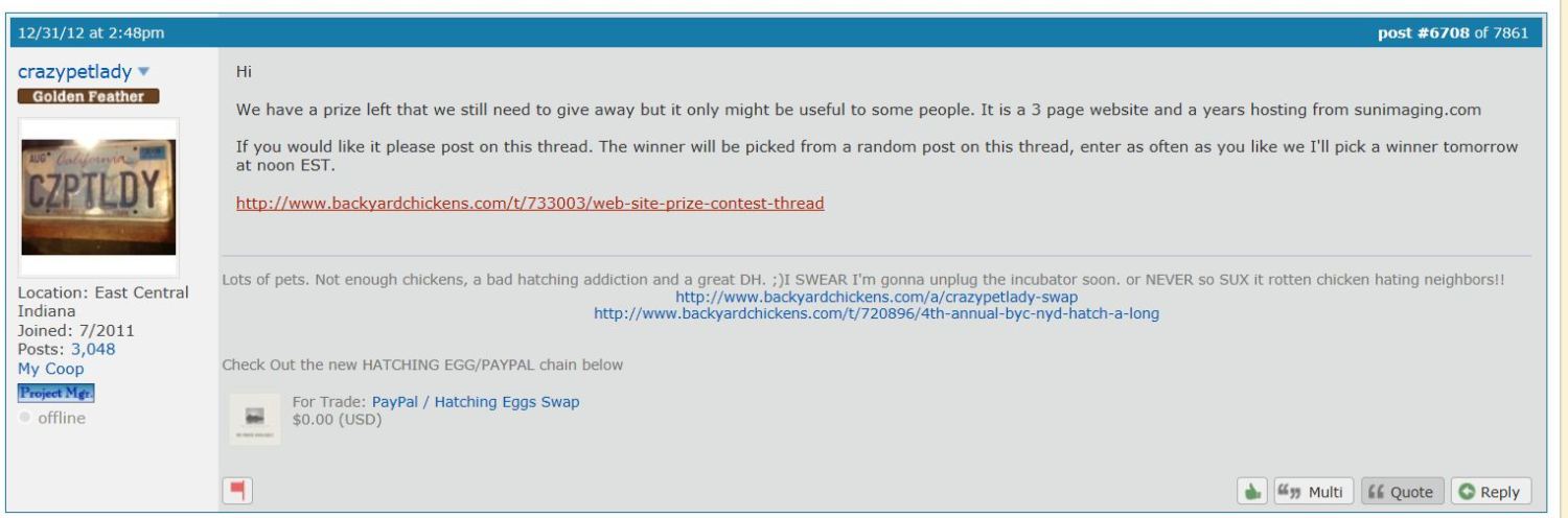 IDK I am lost..... someone should be updated contests page with voting pole links and winners and such... I gave up, see they were all organized and then something musta happened to make a bit of chaos, but they are doing great and trying to figure it all out, its only a few of them doing all this. If I find anything I will let you know.I can't find the thread or spread sheet you are to put a photo and how many for the worst hatch list either. I don't think I am in the running tho for many are having only one or none hatch but you never know.