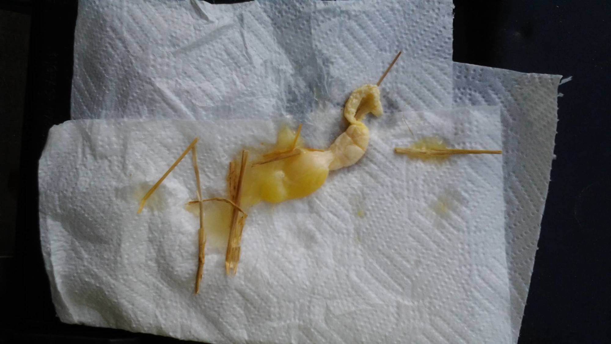 I'm not worried as I think it's just an egg that didn't go through the normal development process for some reason. Curious isn't it?