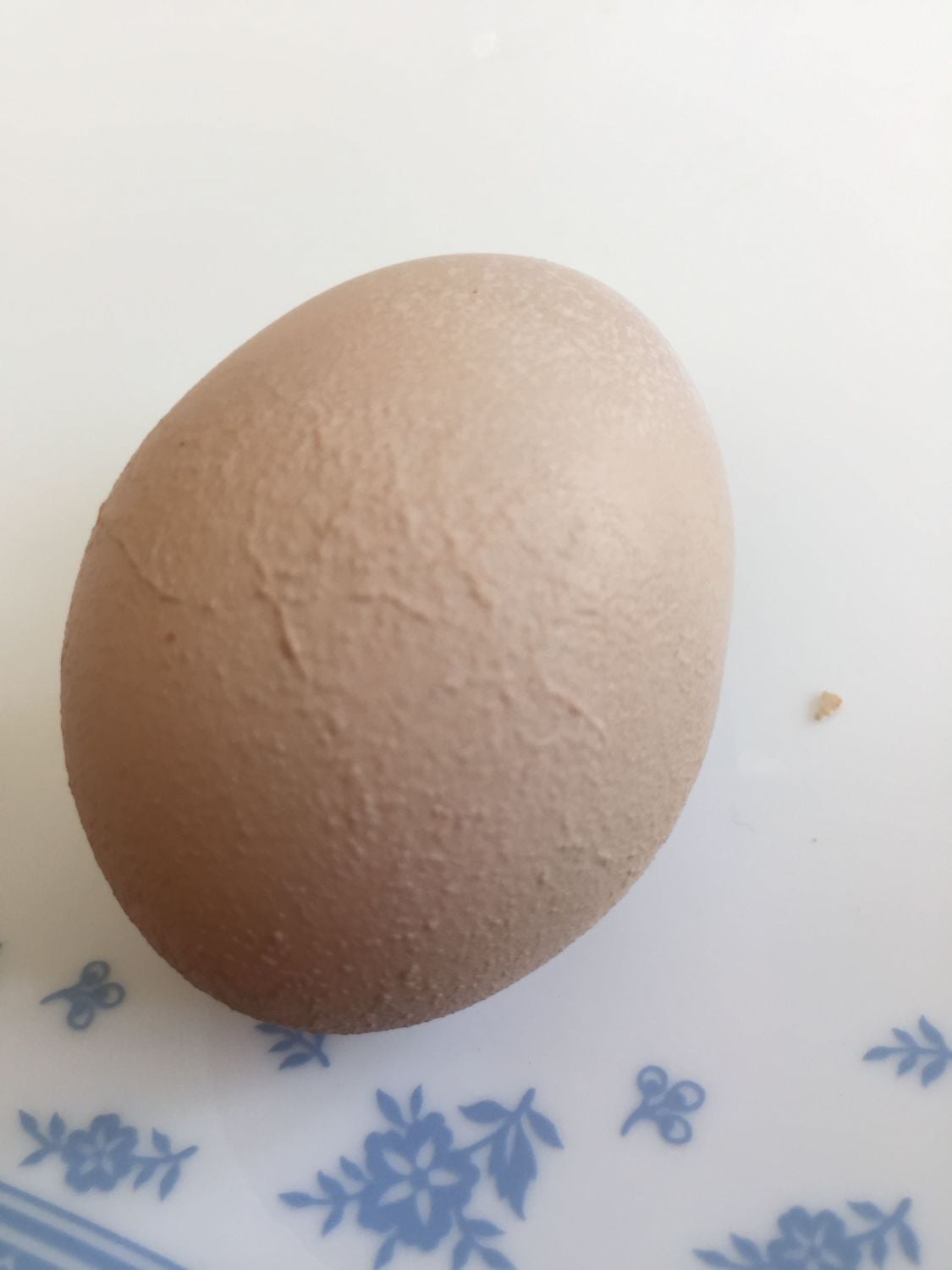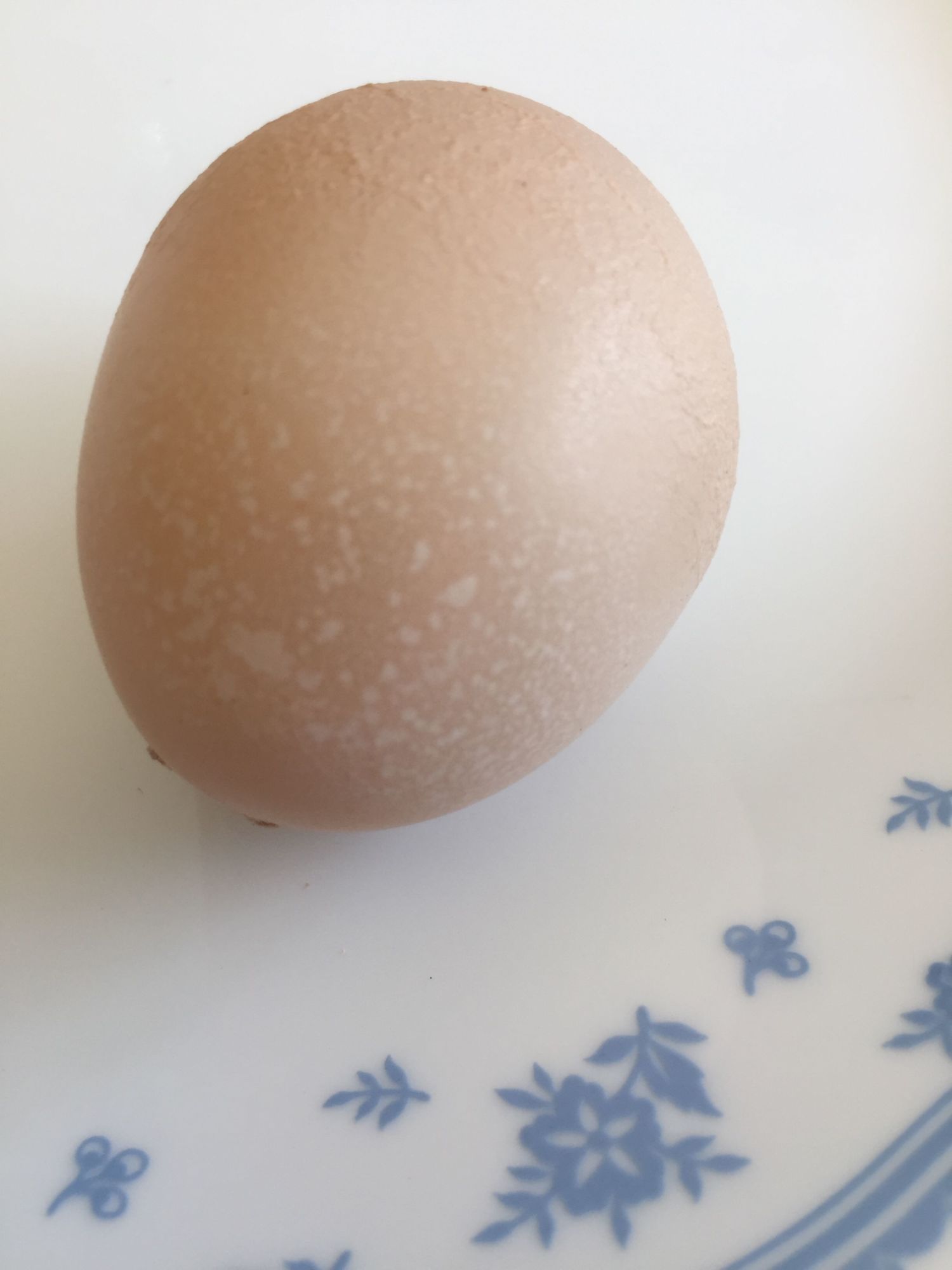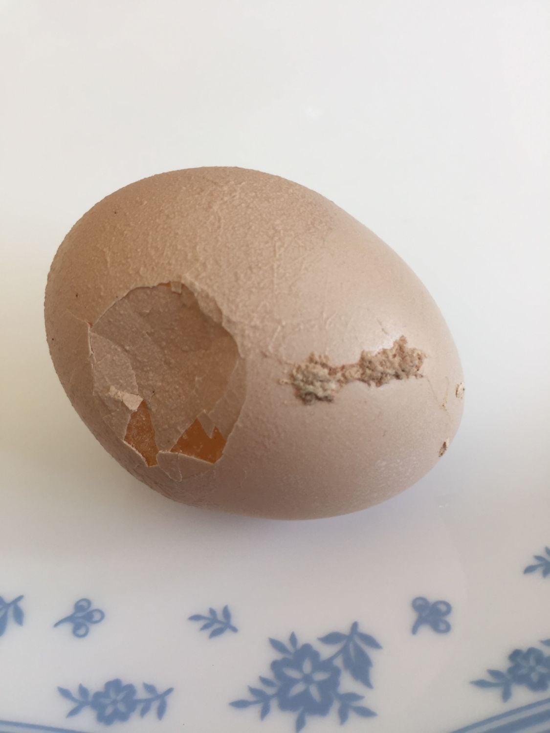 Today, my hen I believe it was either a Barred Rock or a Delaware started laying for the first time. I cant be sure which hen laid the egg, since I was at school but it could only of been those 2 since the others were already laying. The egg seemed to be different than the eggs which im used to seeing. Usually for me, eggs dont look like this. Im extremely bad at explaining things so I have a couple of pictures to post. The hen that laid this egg was healthy and was showing no signs of being sick or anything was wrong. It showed normal chicken behaviors and a positive attitude! The crack I believe was just an accident...