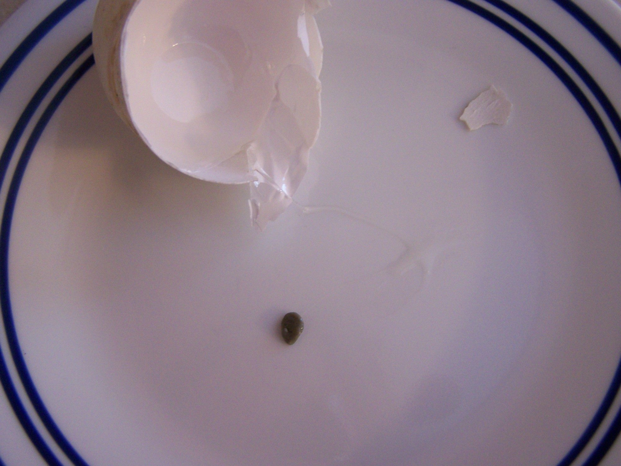 I have raised chickens, ducks and geese for some time now. I have had rubber eggs, big eggs, fart eggs, wrinkly eggs, broken eggs, pullet eggs etc. I have seen blood spots, growing embryos, calcium bumps, thin and thick shells, but this is a first. I opened up one of my runner eggs to find a gray spot about the size of a watermelon seed. I have seen it twice now. If I smash it, it has the consistency of jello or mash potatoes. It smells like egg and I have not tasted it. Does anyone know what this is?
