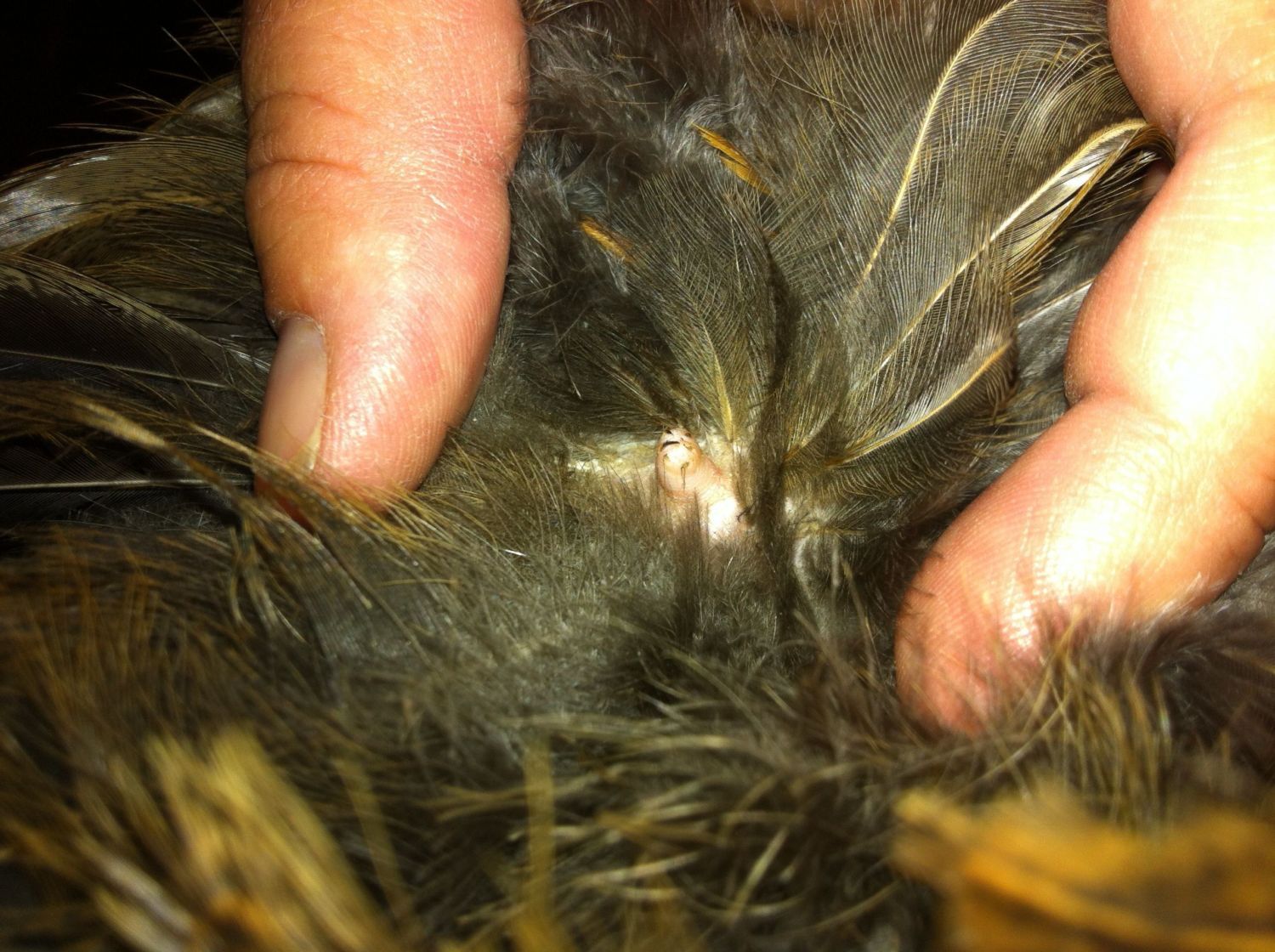 They rub at it with their beaks to pick up oil so they can rub oil on their feathers. Hence why it is called the "preen" gland.I found it because she was pecking at it a little bit. Not a lot, just a little...
