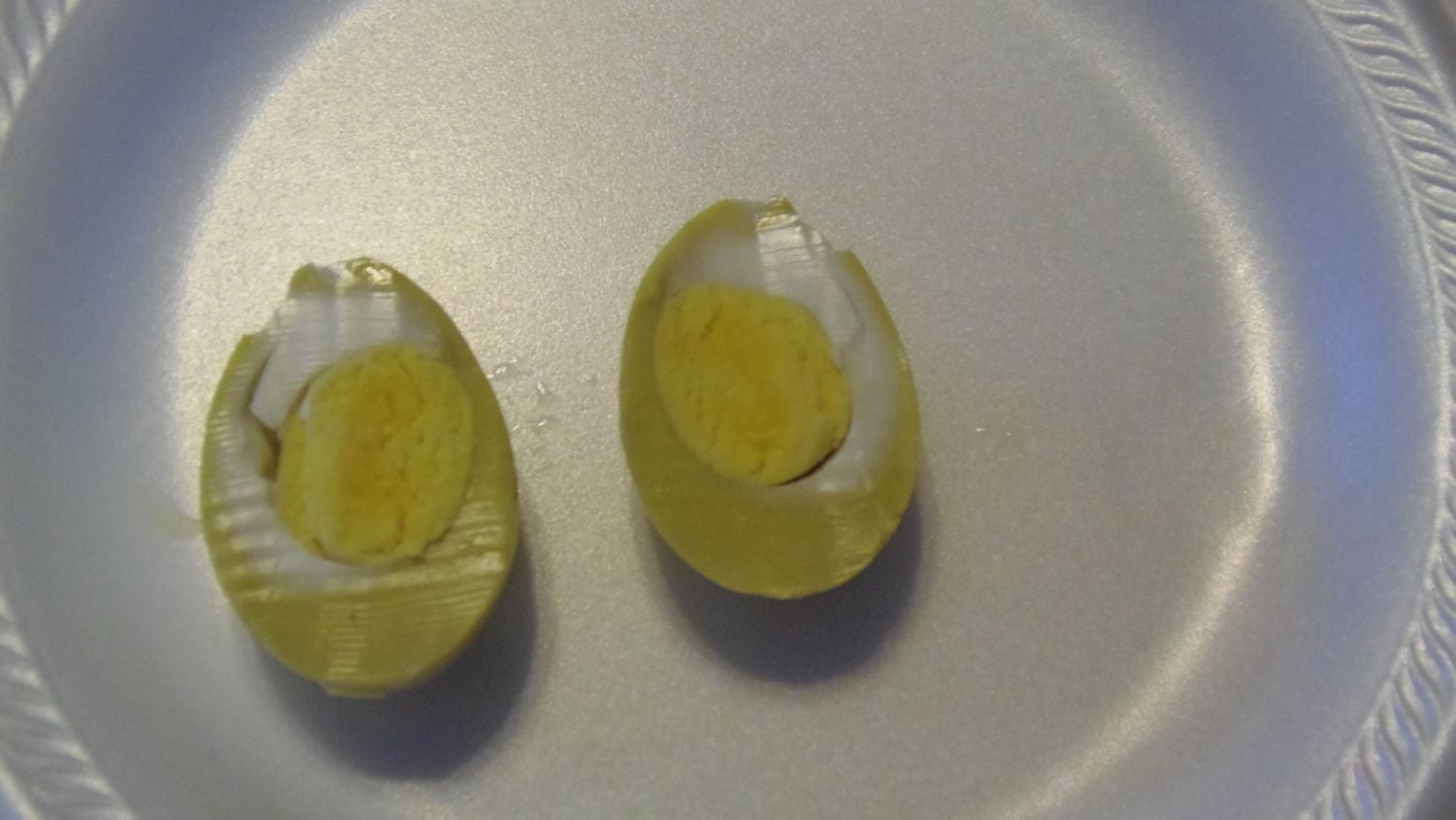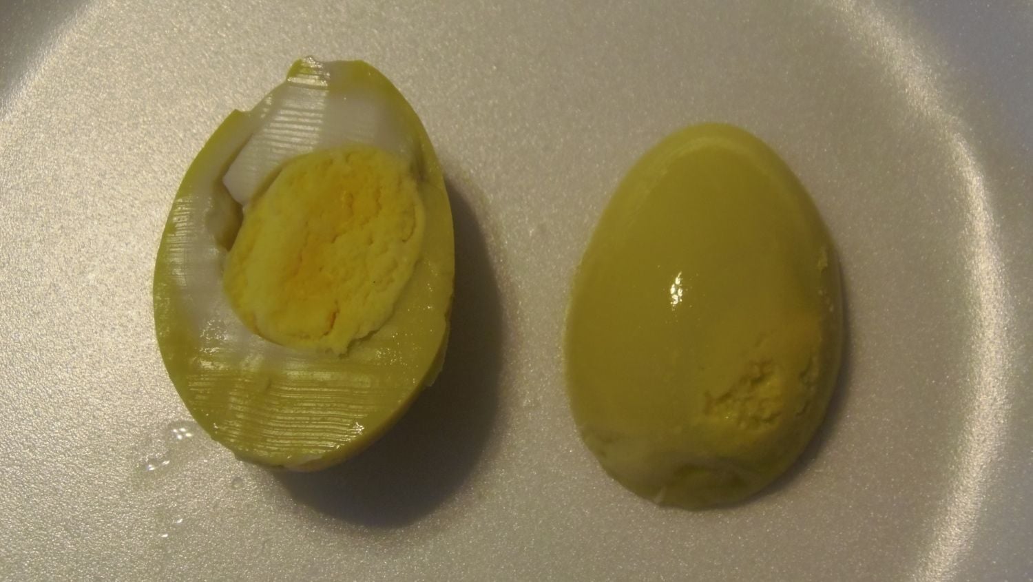 Photo on the right shows the solid yolk on the outside.