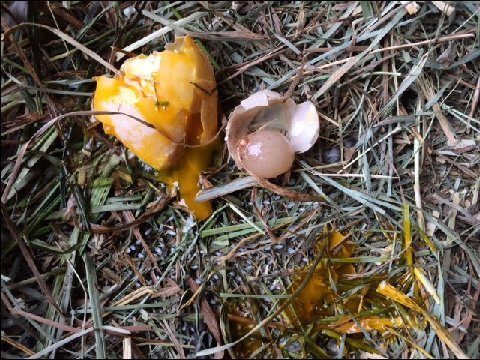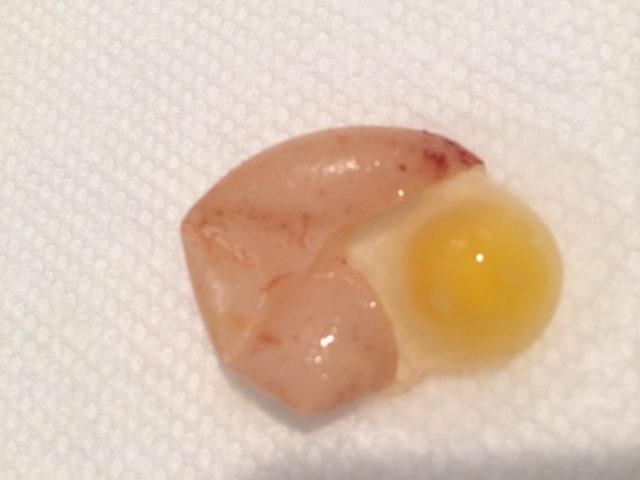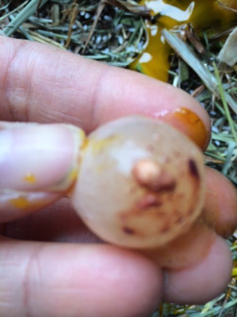Holy cow, here's my chickens' first gargantuan egg
