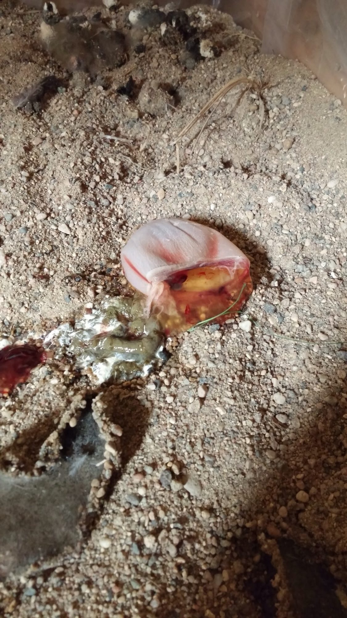 Then all of a sudden she went about as normal leaving a softshell on the ground.