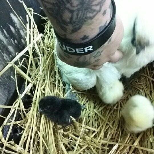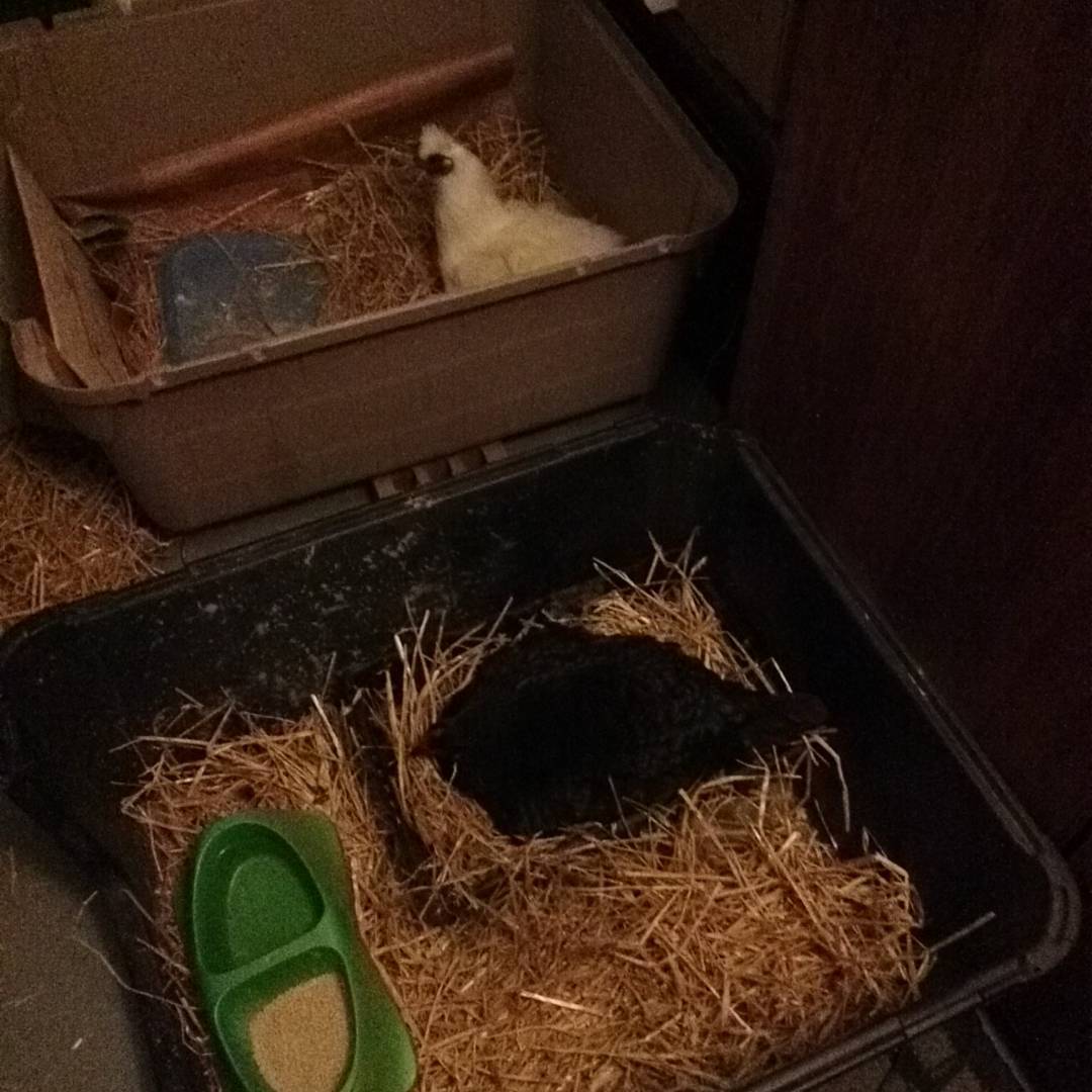 jump ahead in time and I grabbed 15 more randoms breed so I could have different ones to look at and have different eggs lol. I have lost a few more and eaten a few more since then. now I have 25 chicken one of which is a half blind ex rapist exiled silkie roo which follows me around like a puppy all the time and sits in my lap and lets me pet him and minds his own business. One of my silkie females known as broody groupie just hatched out 5 mutt chicks 1 roo and 4 hens so that's pretty good odds. Now I have an astro that decided she wanted to try brooding so I brought her inside and she is sitting on 10? eggs I think.