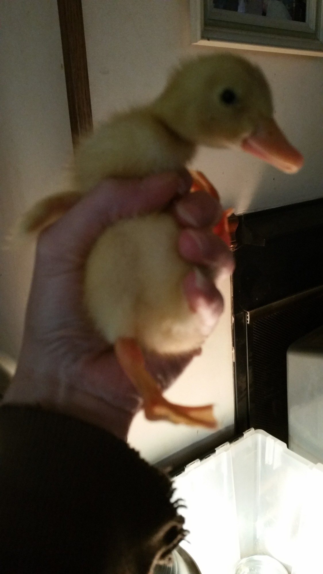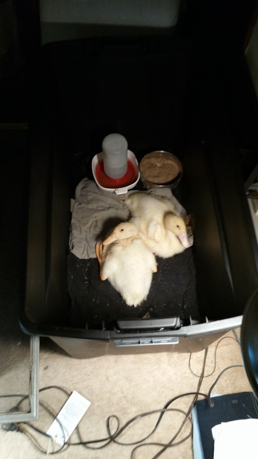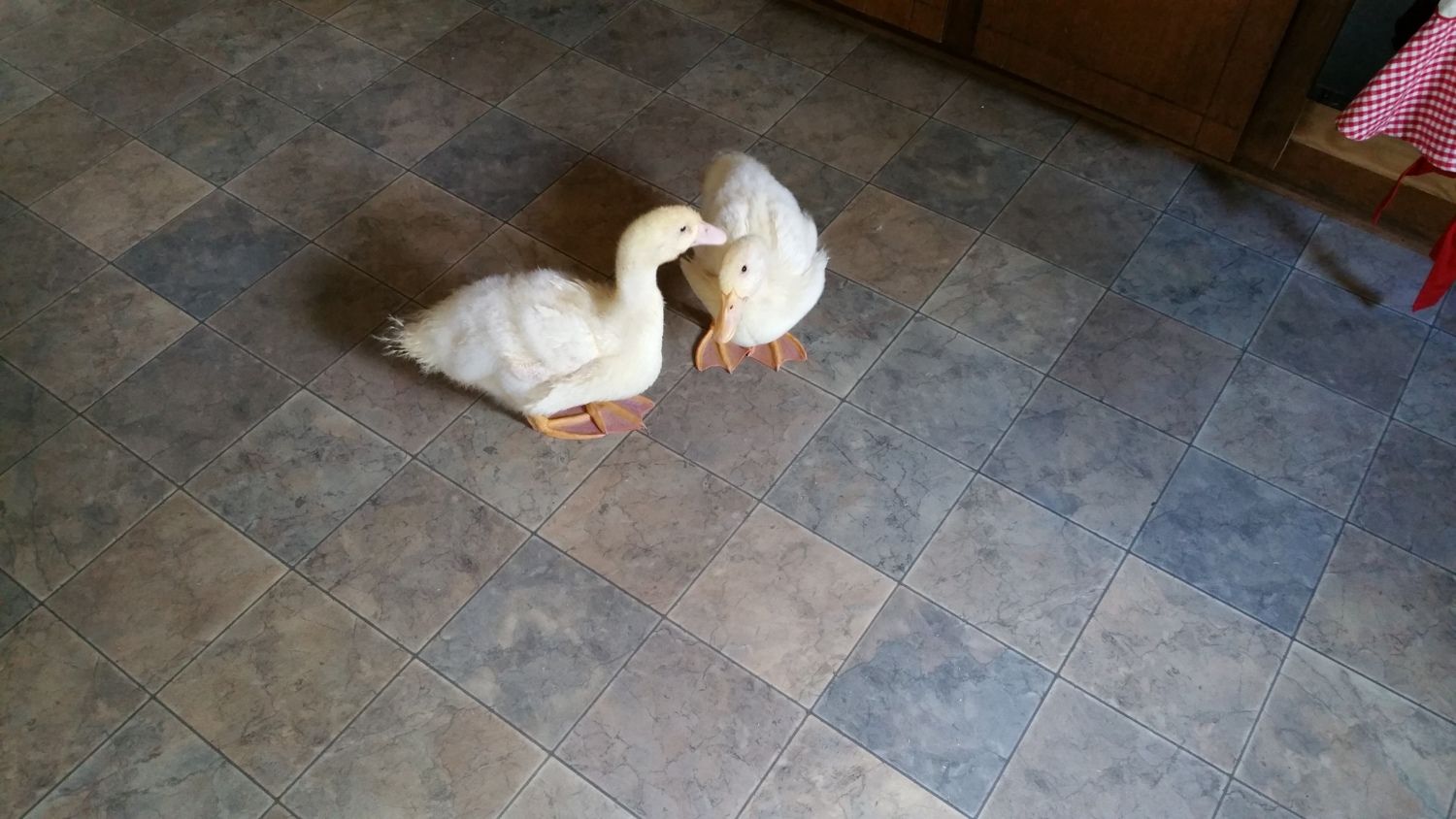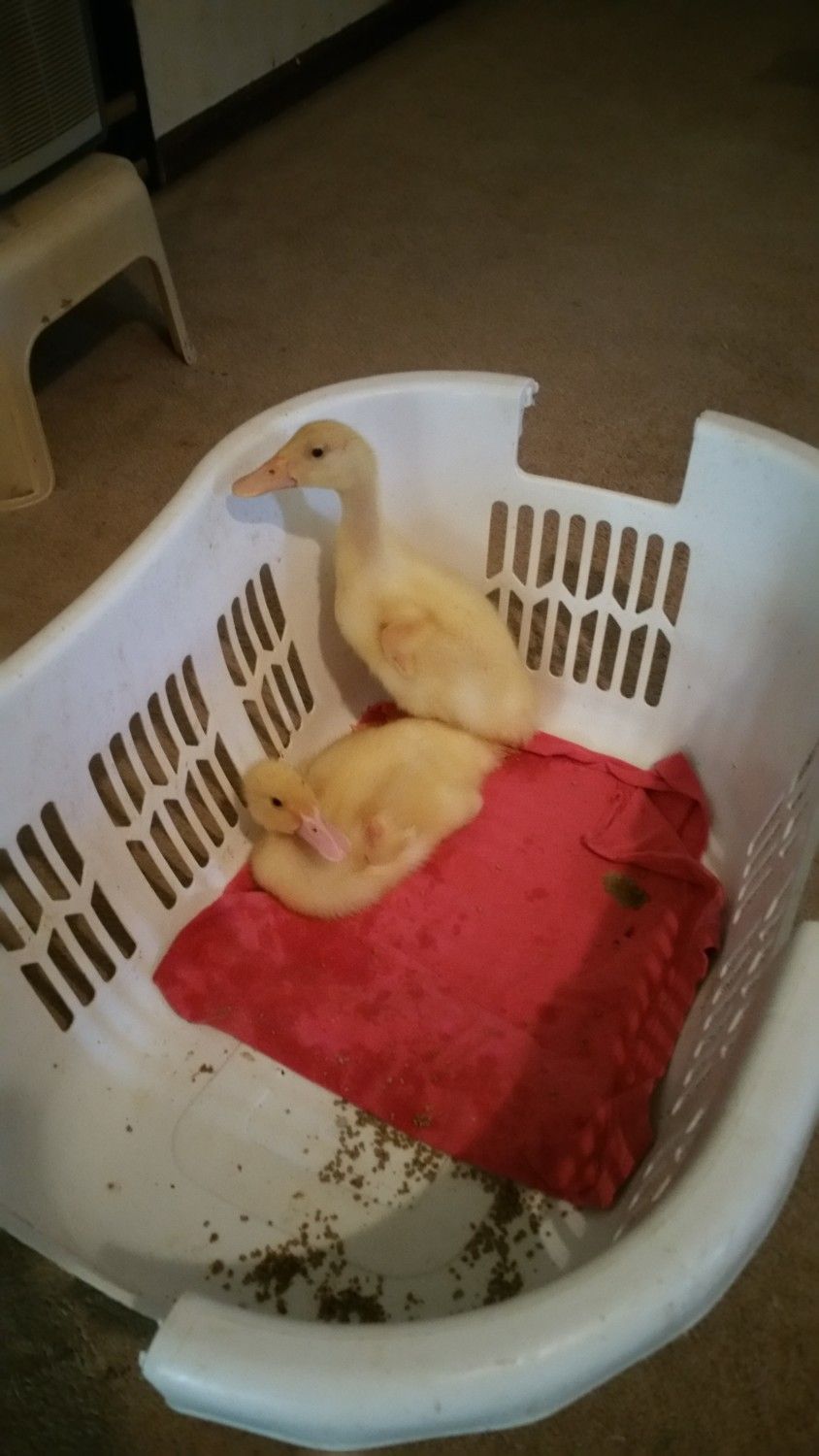 I bought Pekin Ducklings as day olds on the 17th of March. Let me just say, it has been quite an experience. I have learned a lot along the way. They are messy, they are cute, they are cuddly, and they grow FAST!! This is Pekin and Duckie. I'm not sure of gender, but I suspect I have a boy (lighter beak) and a girl (darker beak). They are definitely bonded too. They stick very close to each other when I have them out to stretch their legs and play or for a quick swim. They will be a month old tomorrow! I am in the process of building a duck hut for them. I finished the framework for it finally. Tomorrow I am hoping to be able to start the wall/roof work, and then I can build the enclosure and add in the items they will need. I have more pics on my phone from today, but didn't upload them yet. The pictures really don't even seem to show just how big they are now too!! Also, please note that the laundry basket is only when I am cleaning their brooder out. It's not their brooder.