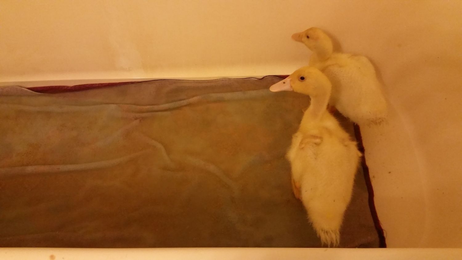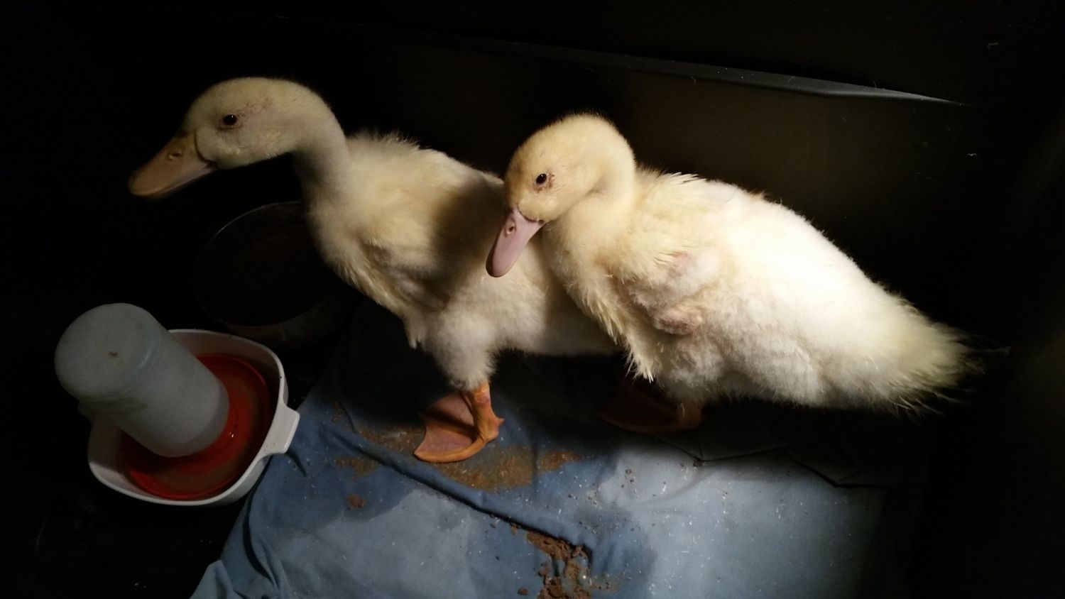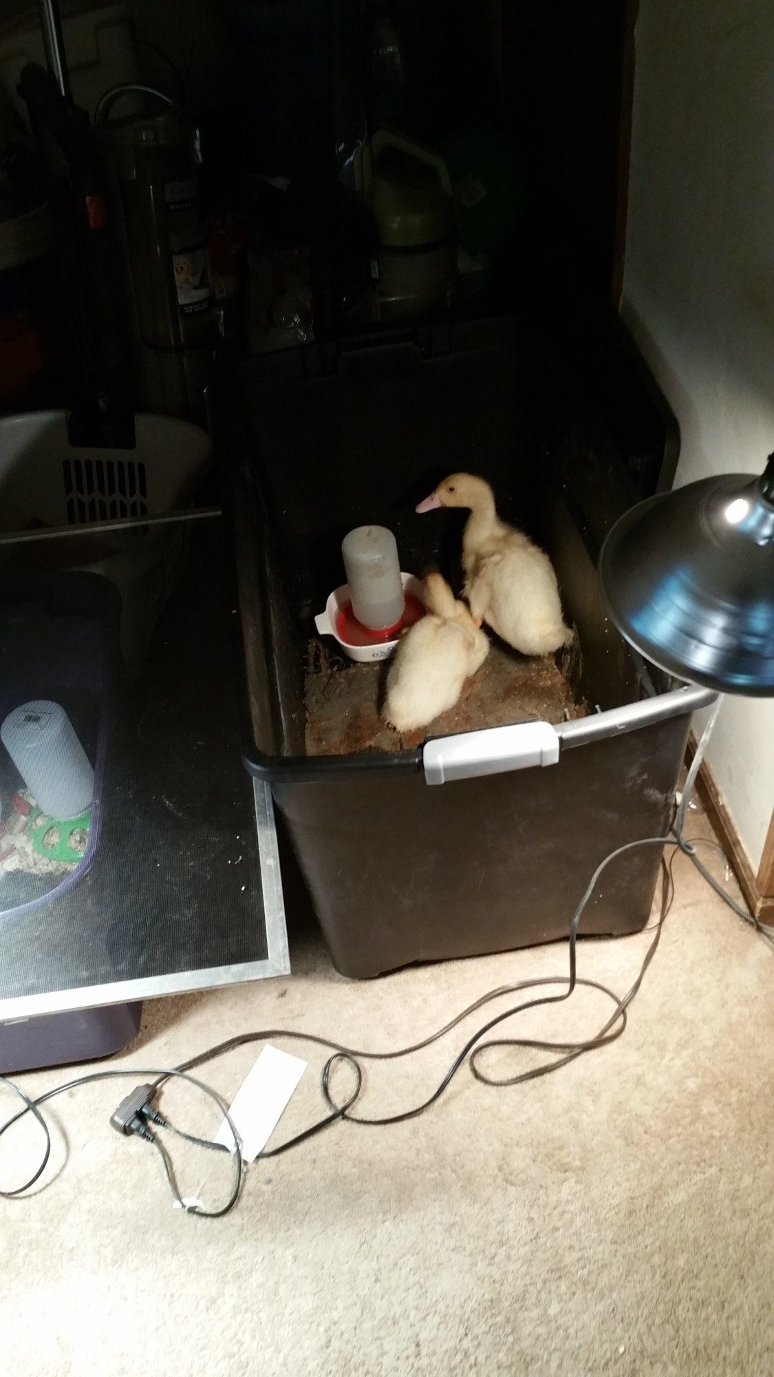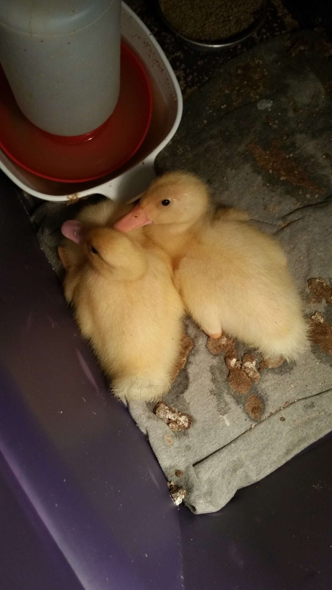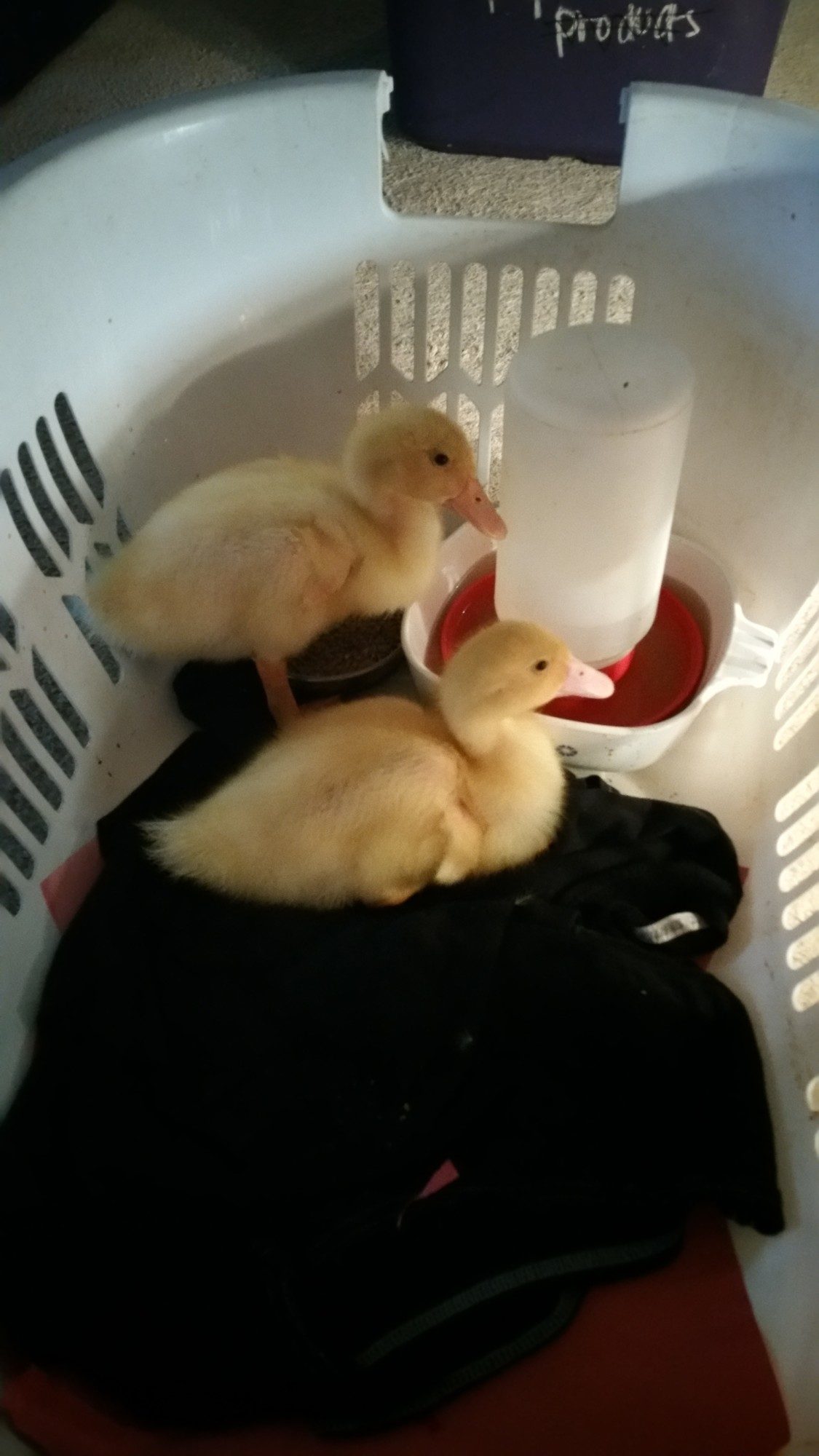 I bought Pekin Ducklings as day olds on the 17th of March. Let me just say, it has been quite an experience. I have learned a lot along the way. They are messy, they are cute, they are cuddly, and they grow FAST!! This is Pekin and Duckie. I'm not sure of gender, but I suspect I have a boy (lighter beak) and a girl (darker beak). They are definitely bonded too. They stick very close to each other when I have them out to stretch their legs and play or for a quick swim. They will be a month old tomorrow! I am in the process of building a duck hut for them. I finished the framework for it finally. Tomorrow I am hoping to be able to start the wall/roof work, and then I can build the enclosure and add in the items they will need. I have more pics on my phone from today, but didn't upload them yet. The pictures really don't even seem to show just how big they are now too!! Also, please note that the laundry basket is only when I am cleaning their brooder out. It's not their brooder.