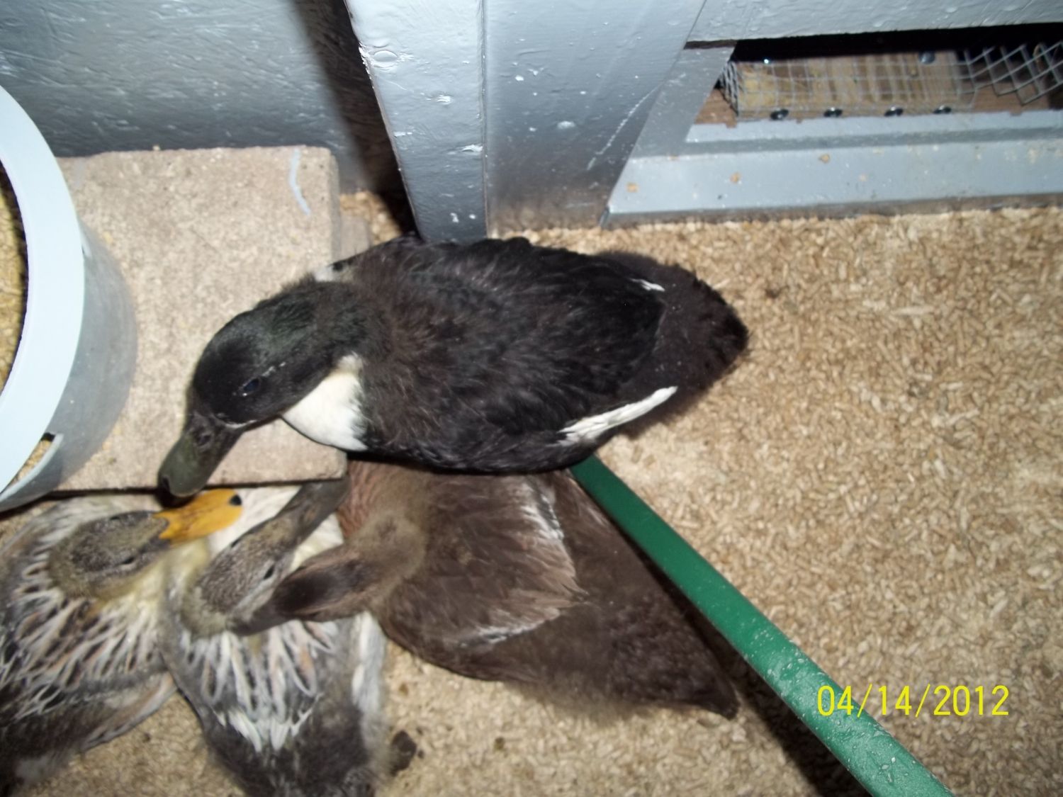 Well, crud. Thanks, Kevin. I haven't much focused on who is making which noises - they quack when they are upset, it seems, and still peep when not. I guess I need to pay more attention to who is making what noises, but I haven't heard anything that sounds a whole lot different from a regular (juvenile) quack. Maybe I'll go to YouTube to familiarize myself with male & female quacking!