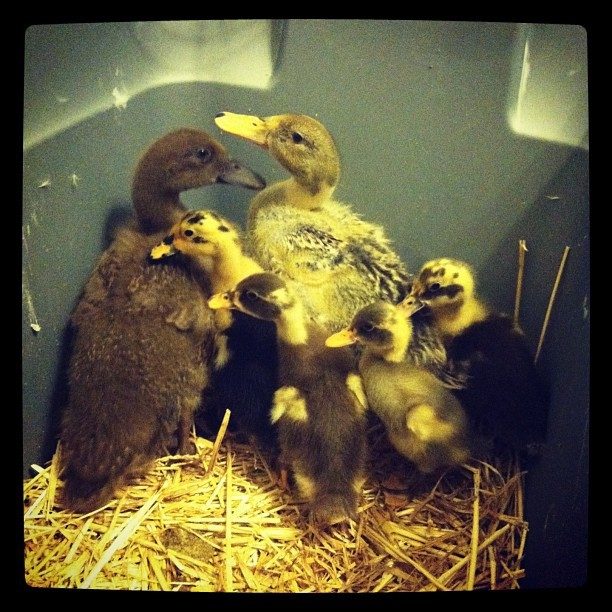 The other big one is a Khaki Campbell, and the littles are Ancona (A black, blue, chocolate, and an unknown strange color, haha!) They are only two weeks younger than the big girls.