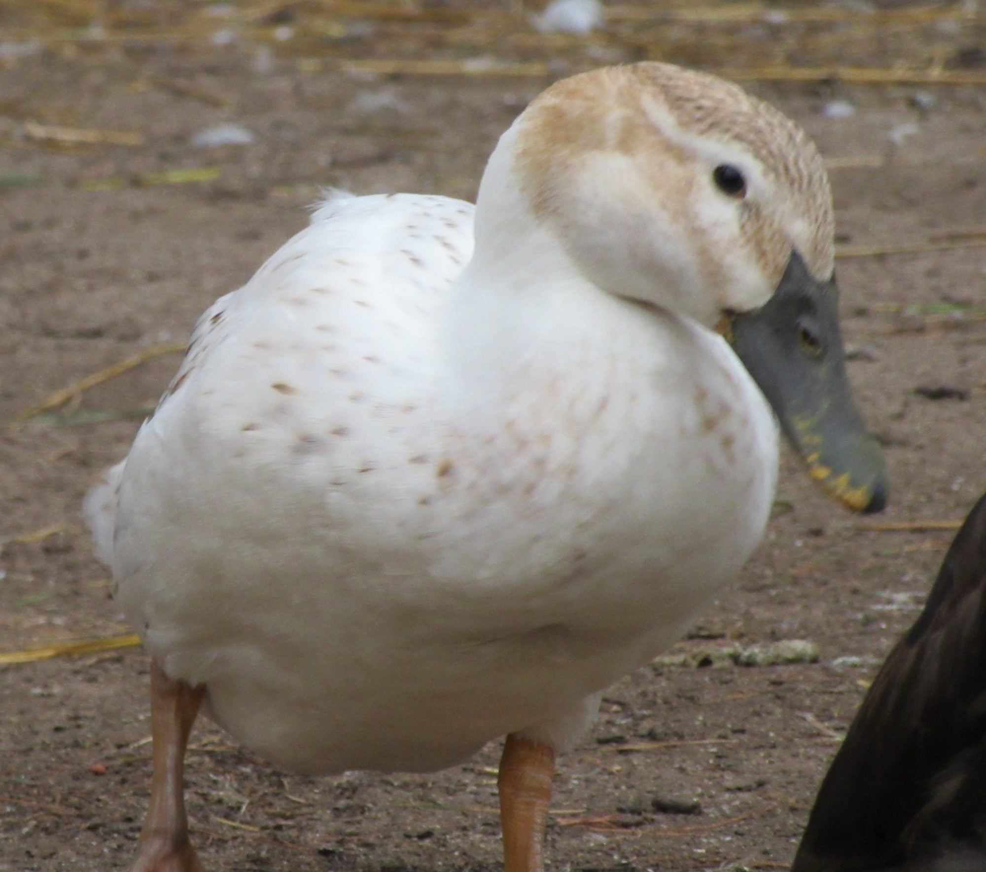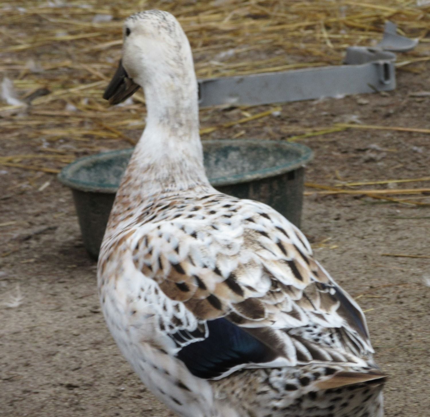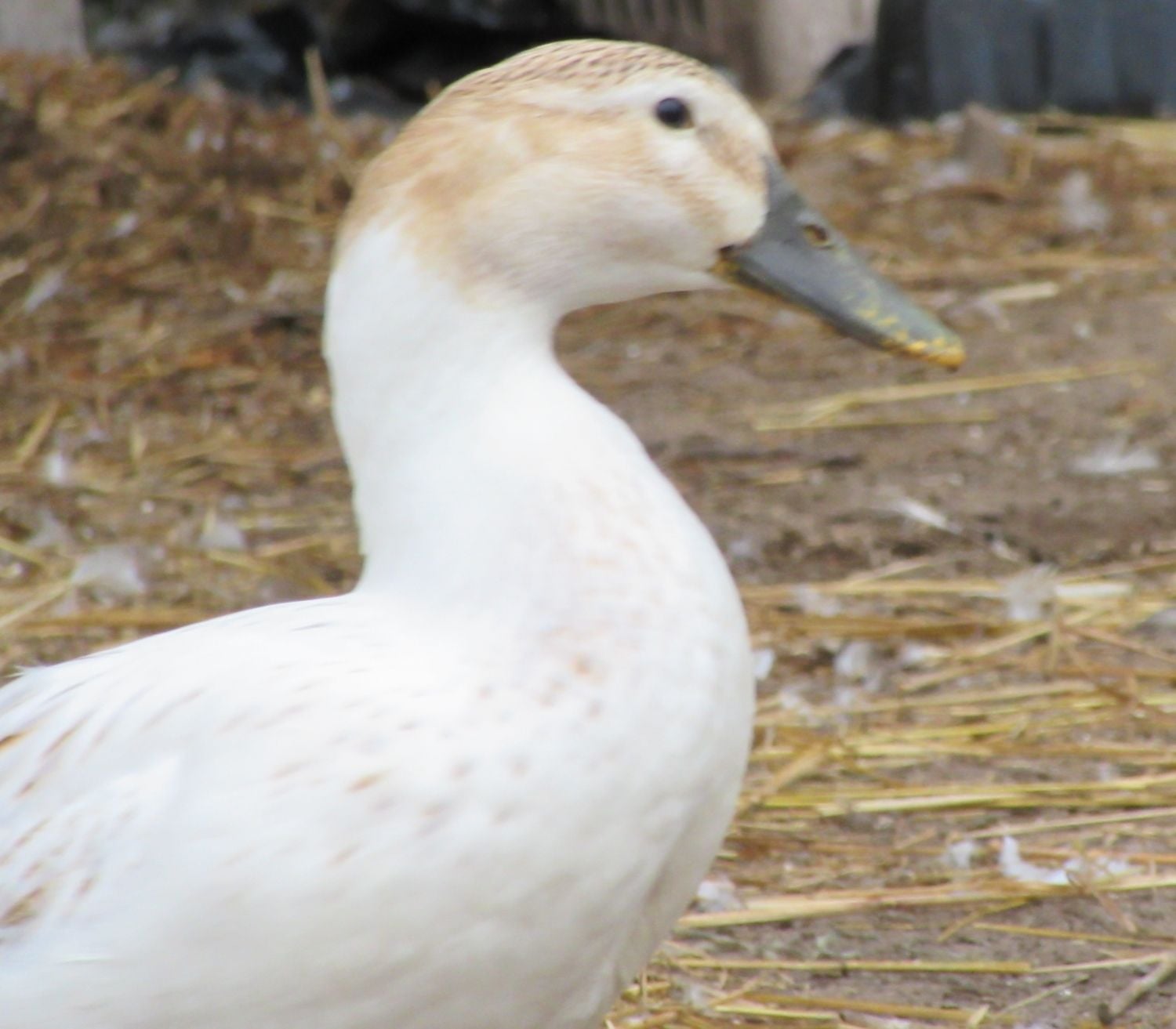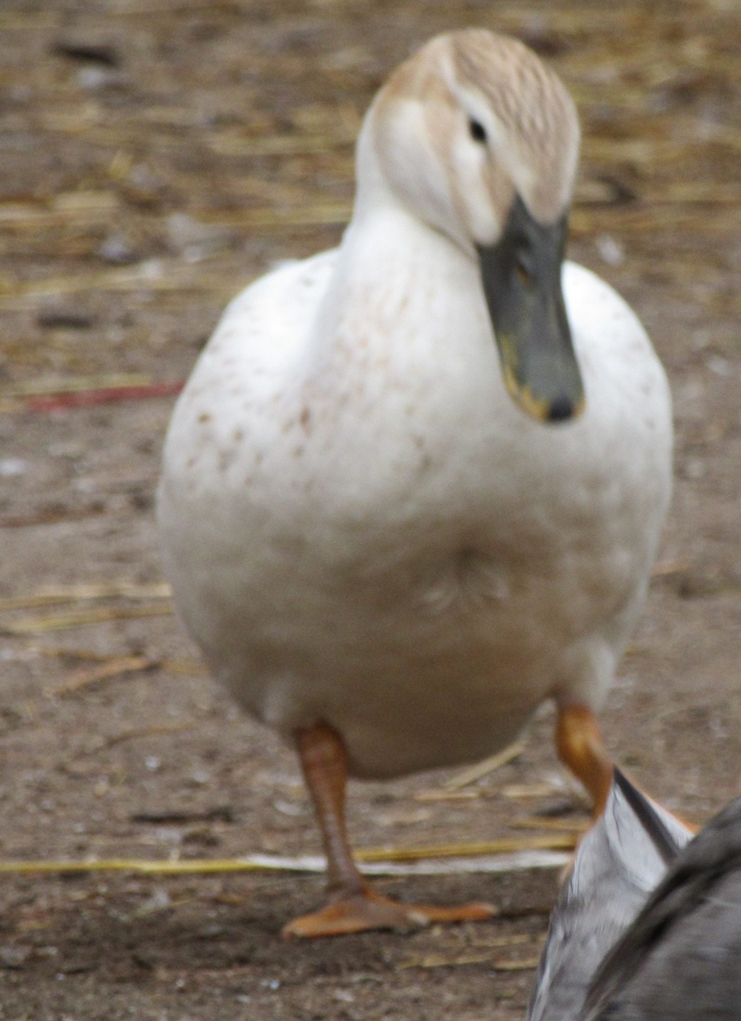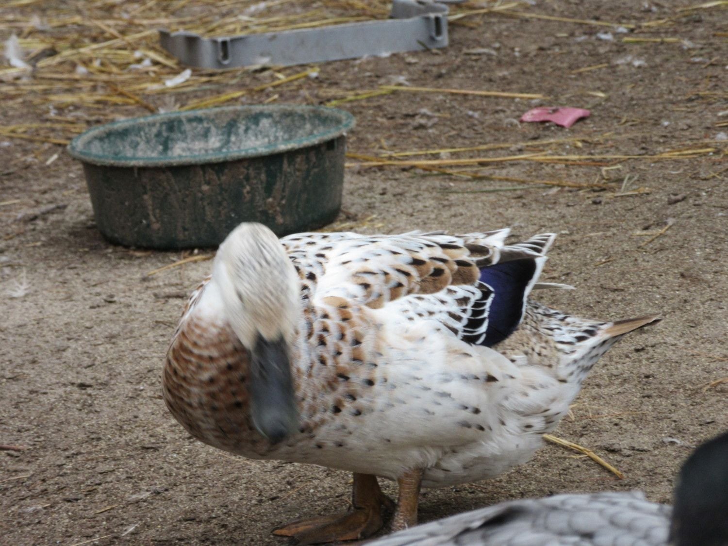 When she goes broody, she's determined to be a mommy, so rather than try to break her up, I put chicken eggs under her since I didn't have any fertile duck eggs. But that's ok...she's hatched out chicks before and has raised them all just as well as she has her ducklings.