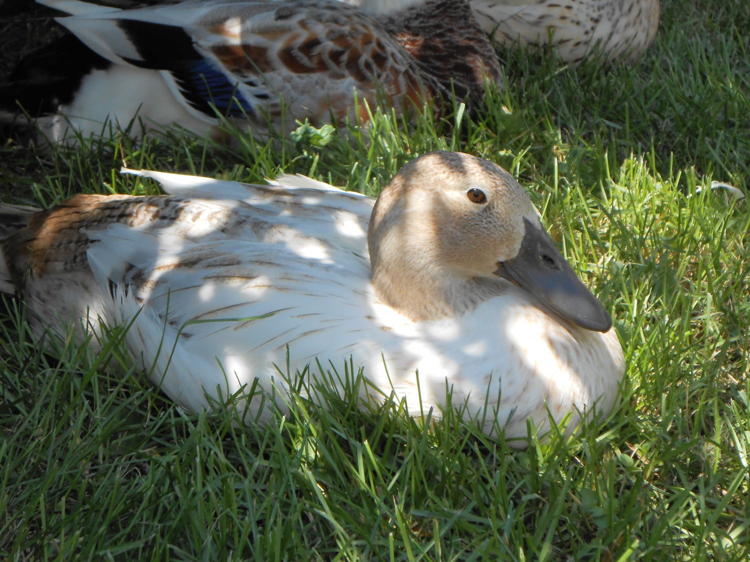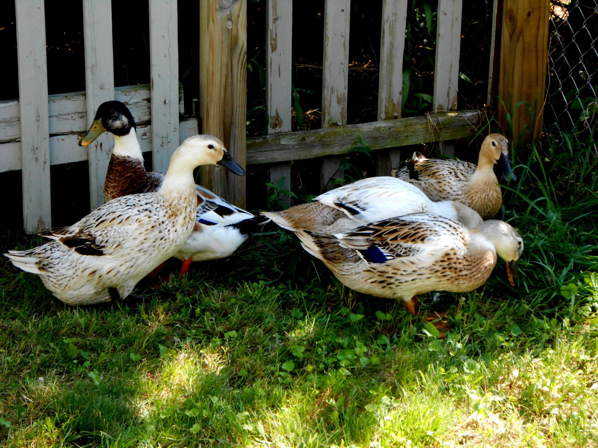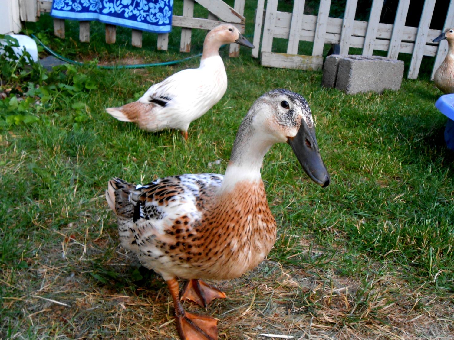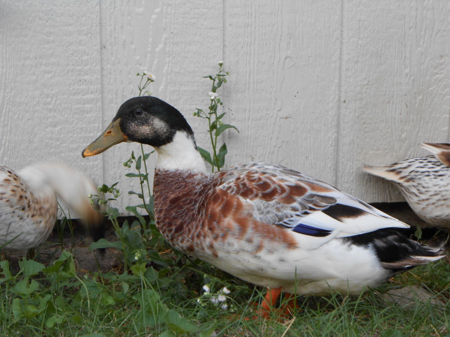 I wanted to add a few new pictures of my little ladies and boy...now I have a question about the boy will his feathers every grow in complete? Do you think he is a good quality to breeder. I want to breed these beauties so I want to make sure I have a good drake to breed:) Also my daughter wants to show one of our ducks can everyone take a good look and tell me if we have a decent candidate:)