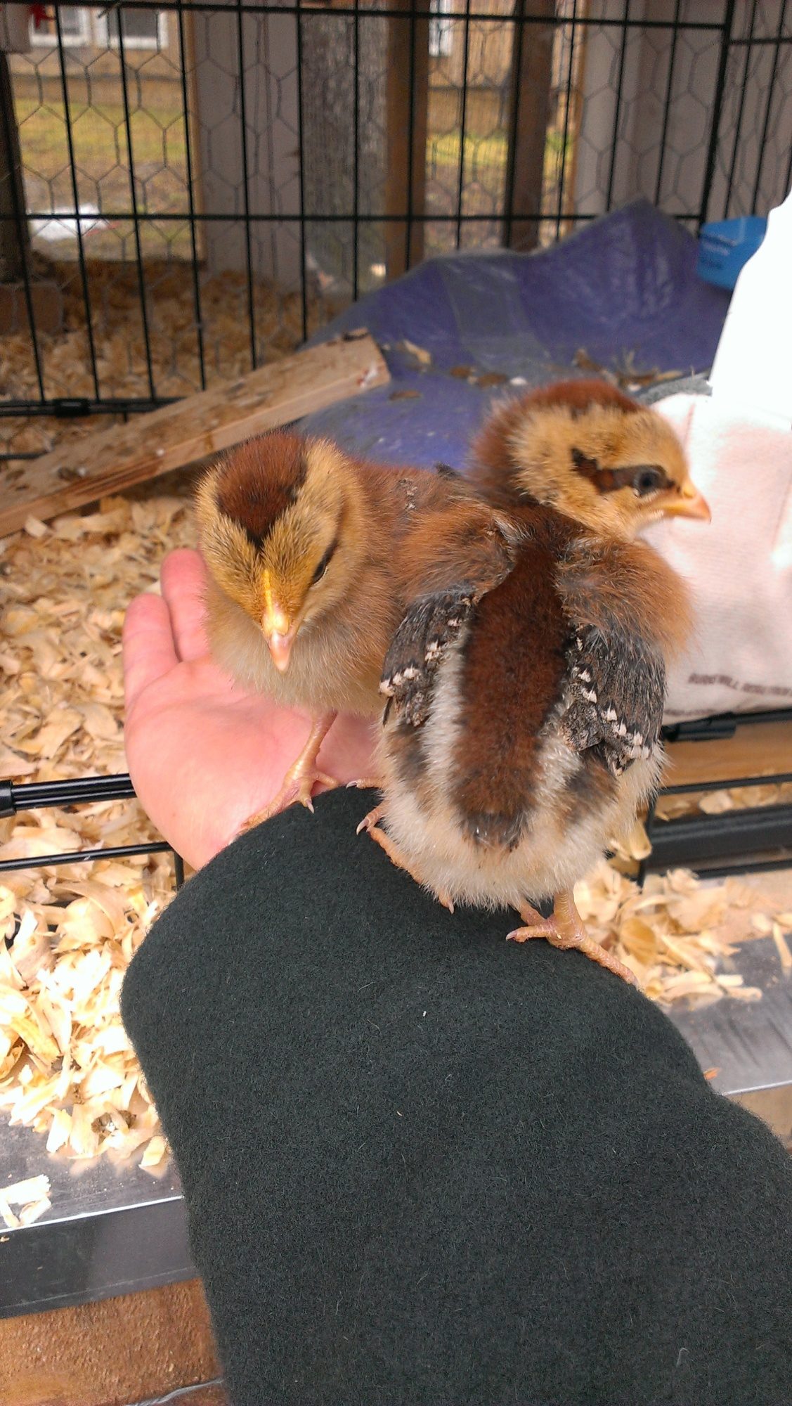 I went to get my new chicks yesterday. I was to pick up two Welsummers and one other. The lady who I got them from had, among others, also ordered Brown Leghorns. They arrived all mixed in the same box. We stared at them and sorted and re-sorted for 30 minutes trying to separate the Welsummers from the Leghorns. At that age it is practically impossible. It was easy to narrow it to about ten. After that it was anybody's guess. Eventually, I just has to roll the dice. I also grabbed a Gold Laced Wyandotte. Now I just wait. Fingers crossed that they never develop that tell tale white ear of the Leghorn. Does anyone know at what age I can expect them to develop their white ear if they are Leghorns?