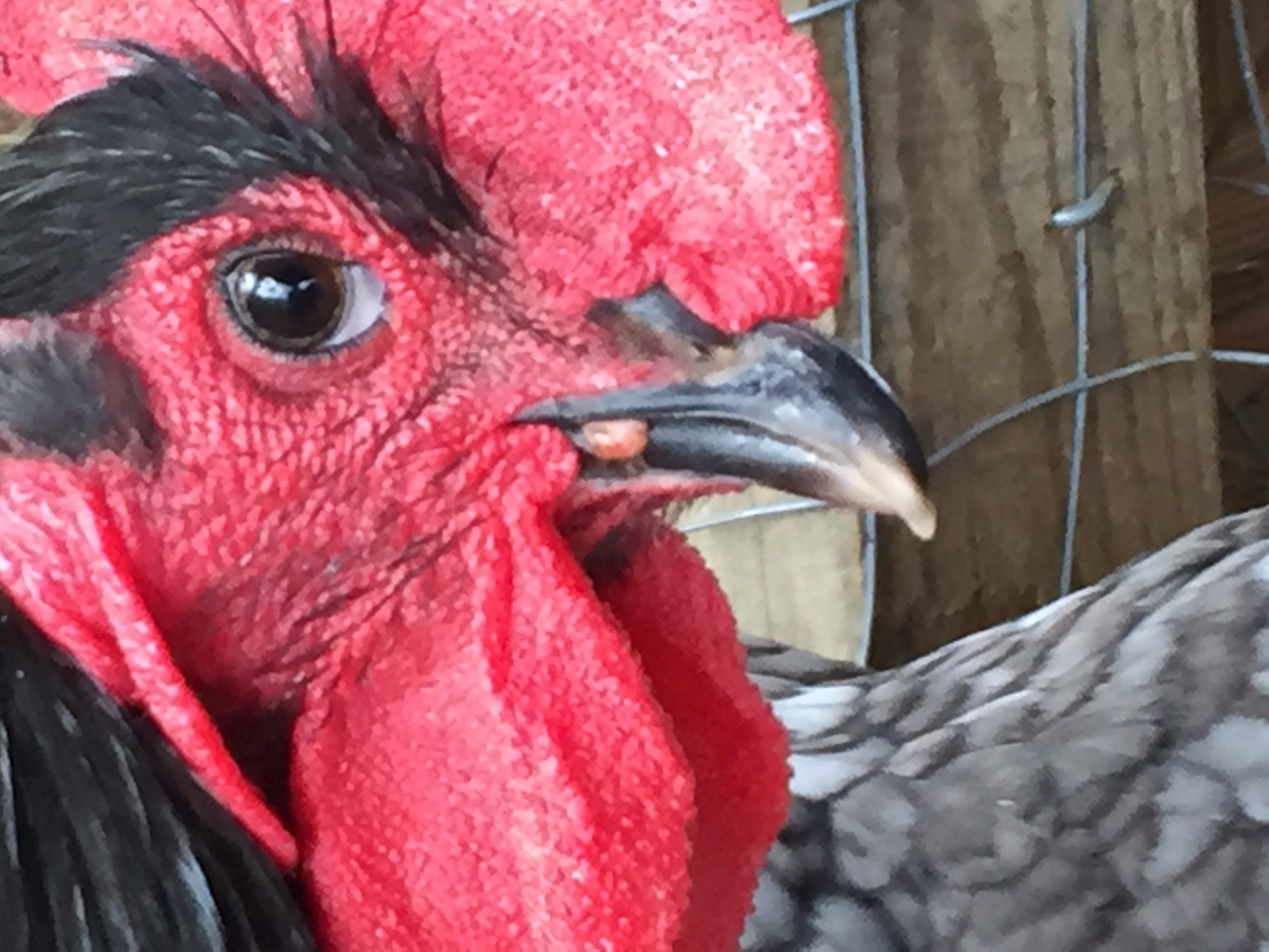 About a week ago I noticed that my alpha roo had some white spots on his comb. I also found some on one of this ladies. We have about 20 chickens and from what I can see they are the only two with spots and neither seems bothered by them. Today I was out feeding them and I heard/saw one of the other hens make a "clearing the throat" sound. I saw her do it again a few hours later and noticed that she was laboured in her breathing. I scooped her up and moved her to a dog crate in the shop. She seems find otherwise and doesn't have any spots.