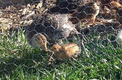 We too keep our feed mostly natural, since she thinks she's a chicken (raised with them since poult) she eats what they eat just a bit more. They were all on gamebird starter & then on grower until we started getting eggs. Yes, she even dropped a few. Now they are all back on grower as the days get shorter & egg production drops.