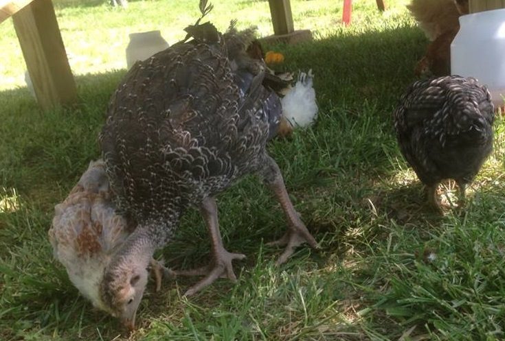 Thanks for the tip on the barley guess I need to increase that in their feed. Will post a couple pics before & after I butcher her. Here are some from poult to now: