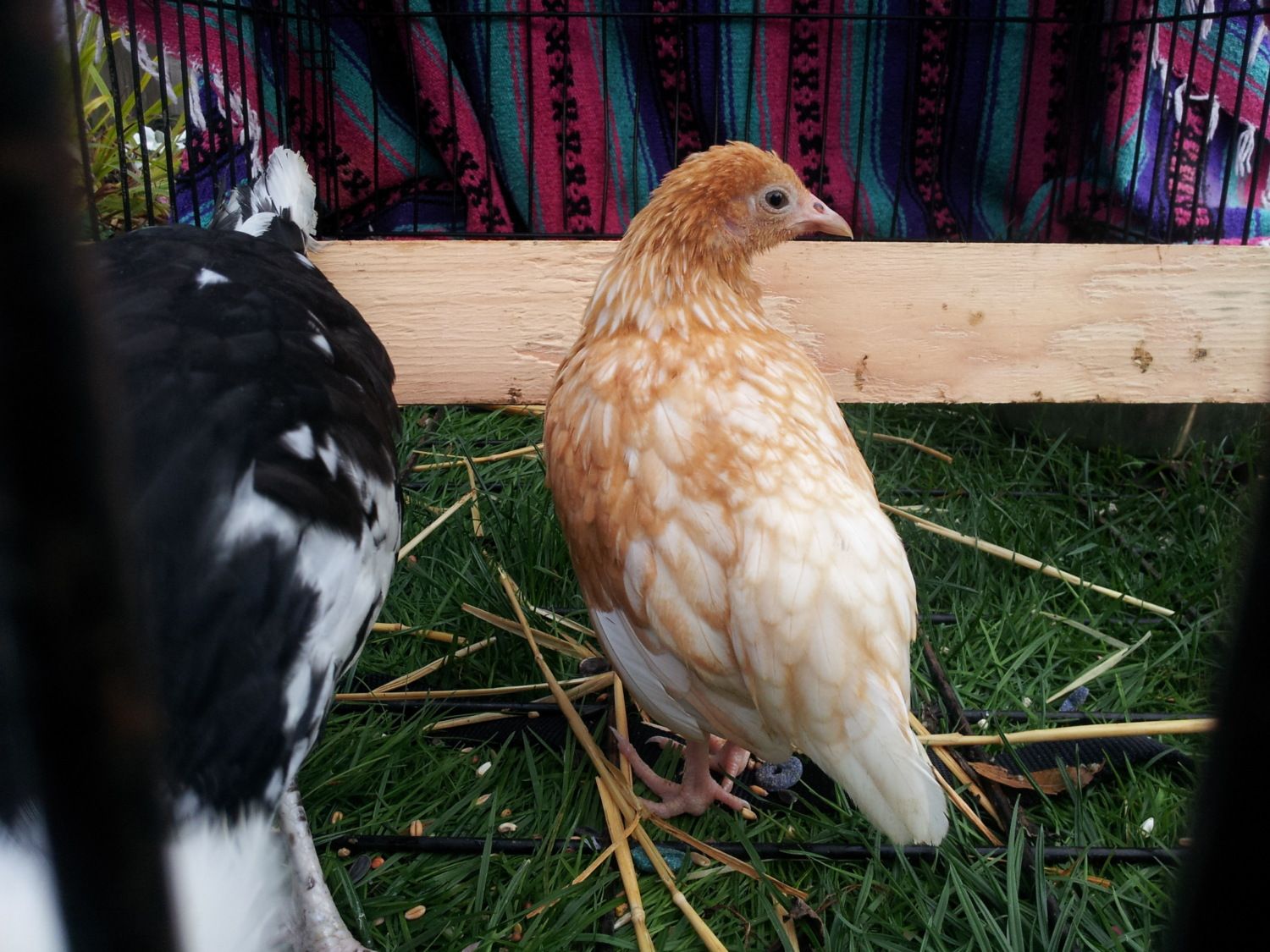 Here are 2 pics of a new 4 month old pullet I recently got - any guesses as to what type (or types) she is? She's tiny, it's hard to see but she's standing next to a Houdan (also 4 months old) who dwarfs her quite a bit. Cute and friendly and very talkative!