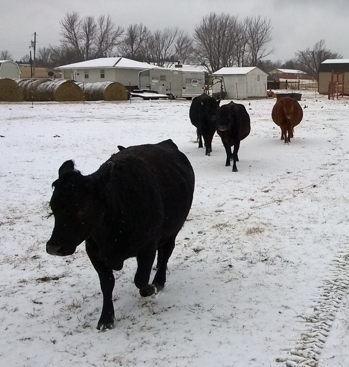 4 Cows - Two Angus, 1 Brahma mix, 1 Jersey, plus two calves and two more due the end of April or early May.