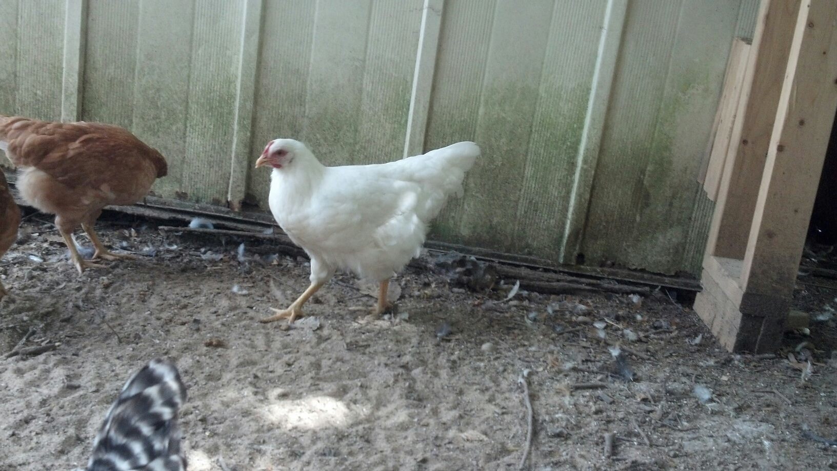 The white hen is a White Rock. But just to be sure what color are her earlobes?